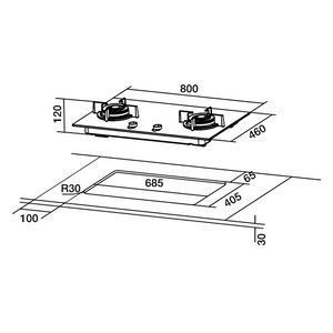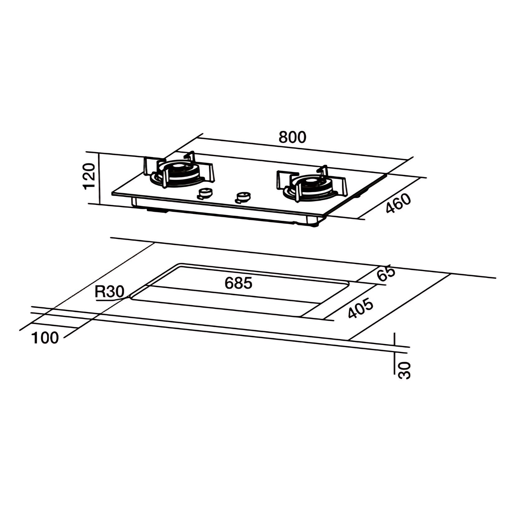 Introducing our 80cm Gas Hob with 2 Burners, offering flexible installation options and reliable performance. Featuring Sabaf Burners made in Italy, each burner delivers powerful cooking performance. Safety is ensured with a Flame Failure Safety Device, while cast iron pan supports provide stability for your cookware. Enjoy effortless ignition with built-in auto ignition powered by a 1.5V battery (D size). Ideal for modern kitchens seeking convenience and efficiency.