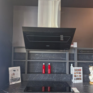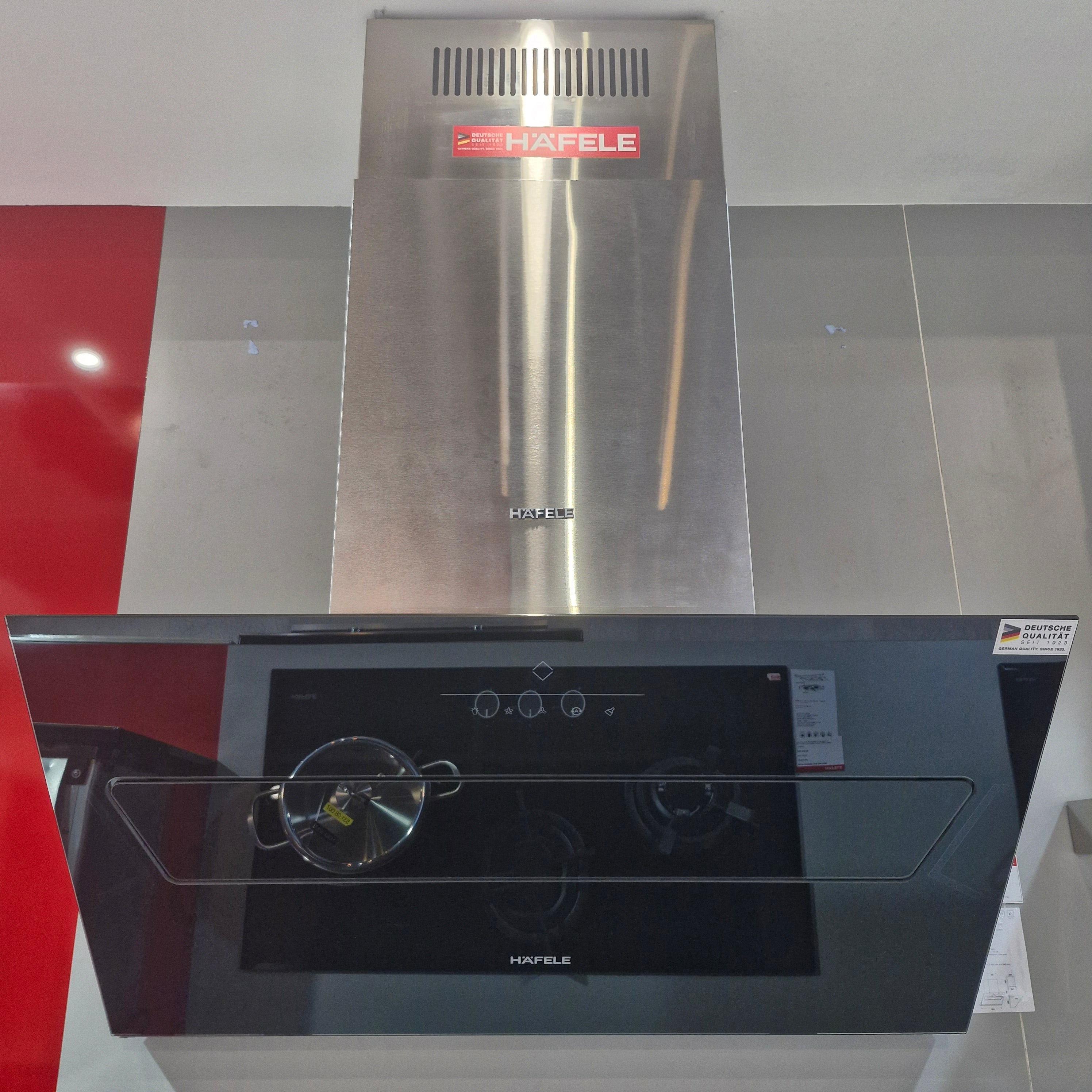 Introducing Hafele's sleek 90cm Designer Hood, boasting a powerful max suction power of 1680 m3/h and three-speed controls for efficient ventilation. With its filter-free design, dual impellers, and oil collector, maintenance is made hassle-free. Enjoy added convenience with auto-opening, LED light, LED display, and timer functions. Cleaning is effortless with the easy-clean design, and noise levels range from 55 to 70 dB for a quiet cooking atmosphere. Choose between ventilation or recycle installation options. Ideal for style-conscious homeowners seeking functionality and elegance.
