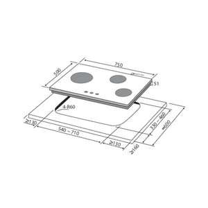 Cut-Out Dimensions (WxD): 540 - 710 x 330 - 460 mm