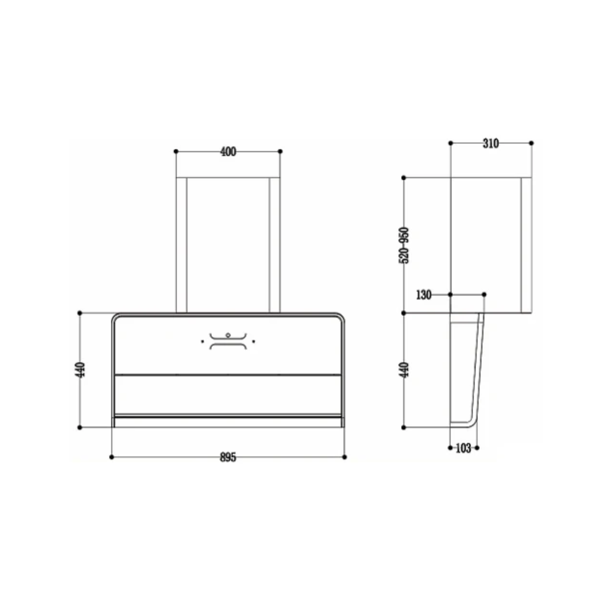 Product Dimensions (LxWxH) : 895 x 310 x 960 - 1390mm