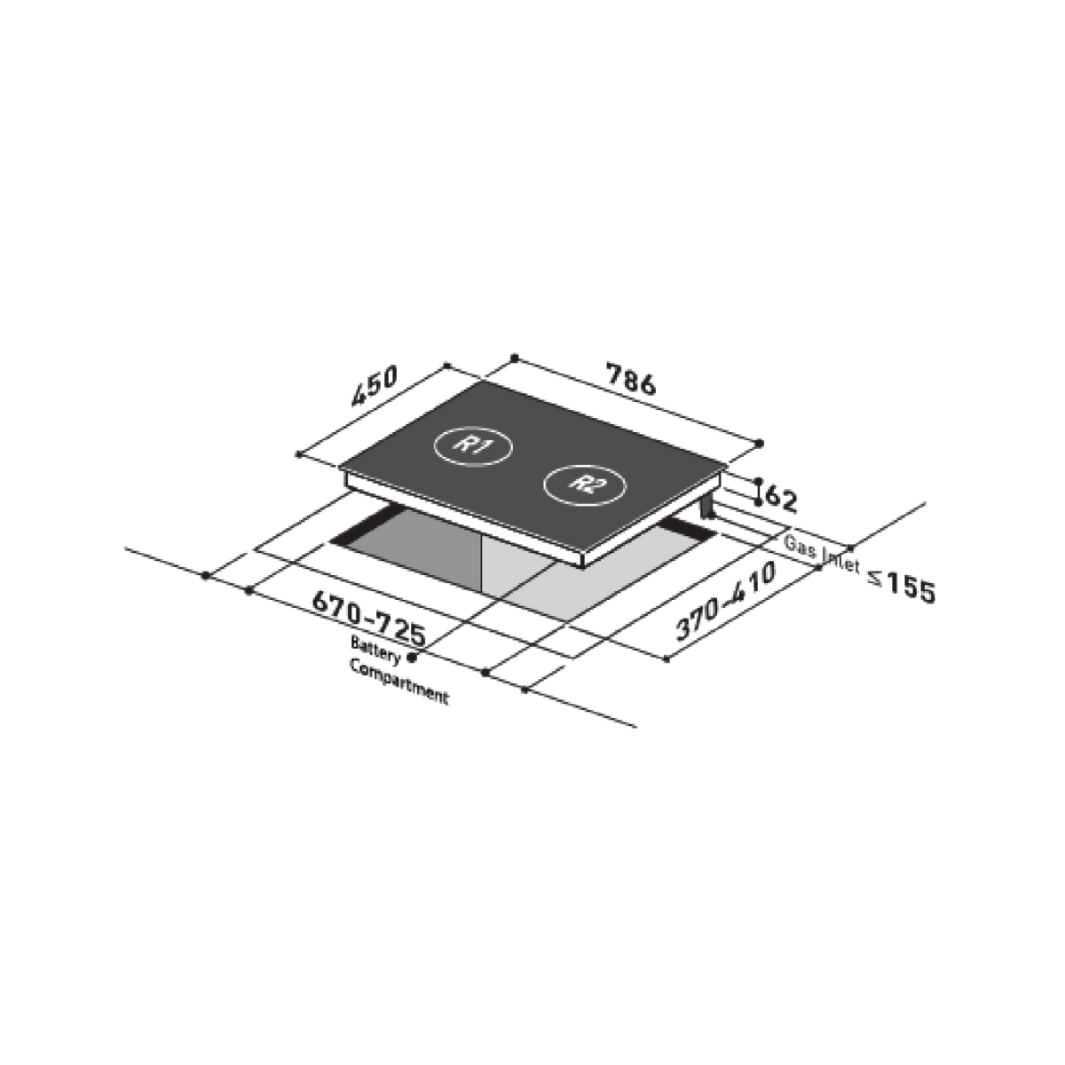 Cut-Out Dimensions (WxD): 670 - 725 x 370 - 410 mm