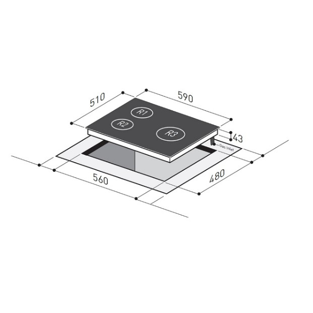 Cut-Out Dimensions (WxD): 560mm x 480mm
