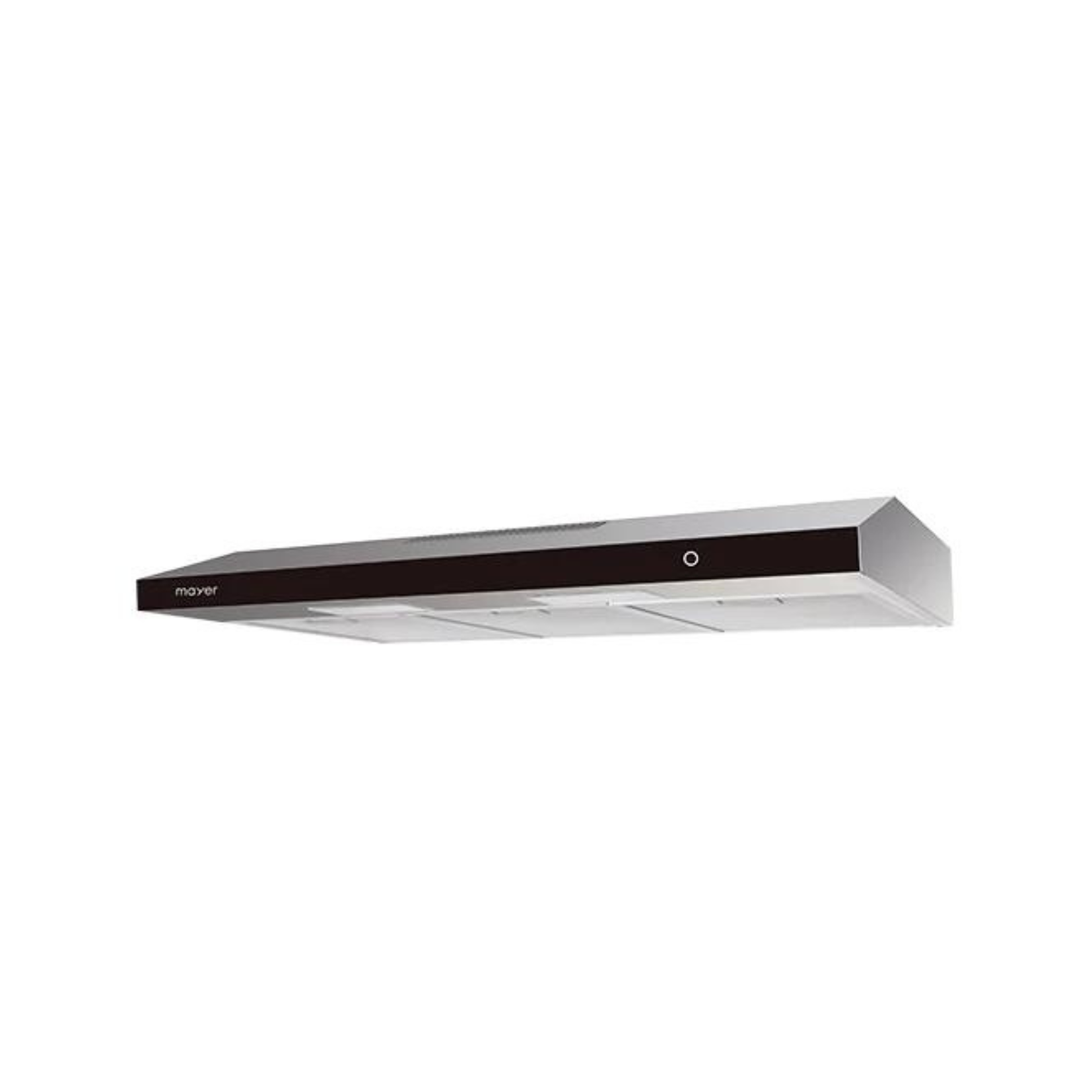 Experience refined kitchen elegance with the Mayer MMSL902BE 90 cm Slimline Hood. Crafted in high-grade stainless steel with a black deco acrylic front panel, it offers powerful extraction of 825 m³/hr through three 100 W motors, while staying whisper-quiet (<59 dB). Touch-controlled with LED lighting and dual filters, it exudes luxury and ensures fresh, clean air—even when cooking intense flavours.