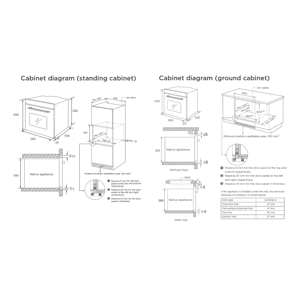 Product Dimensions (WxDxH): 595 x 575 x 595 mm