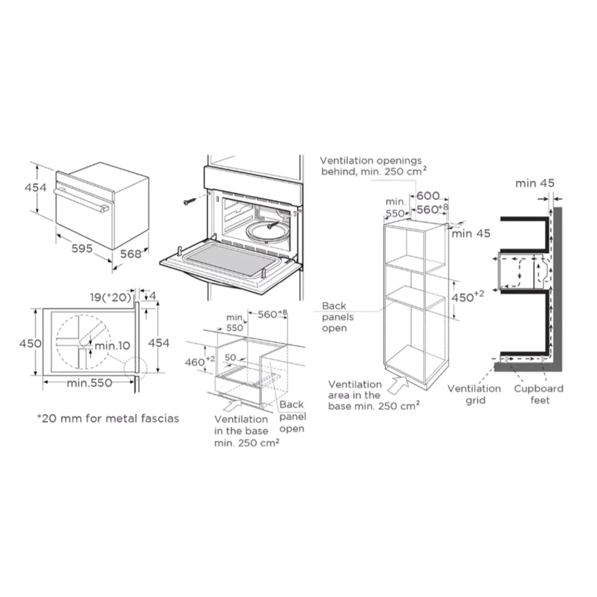 Cut Out Dimensions (WxDxH): 595 x 575 x 595mm