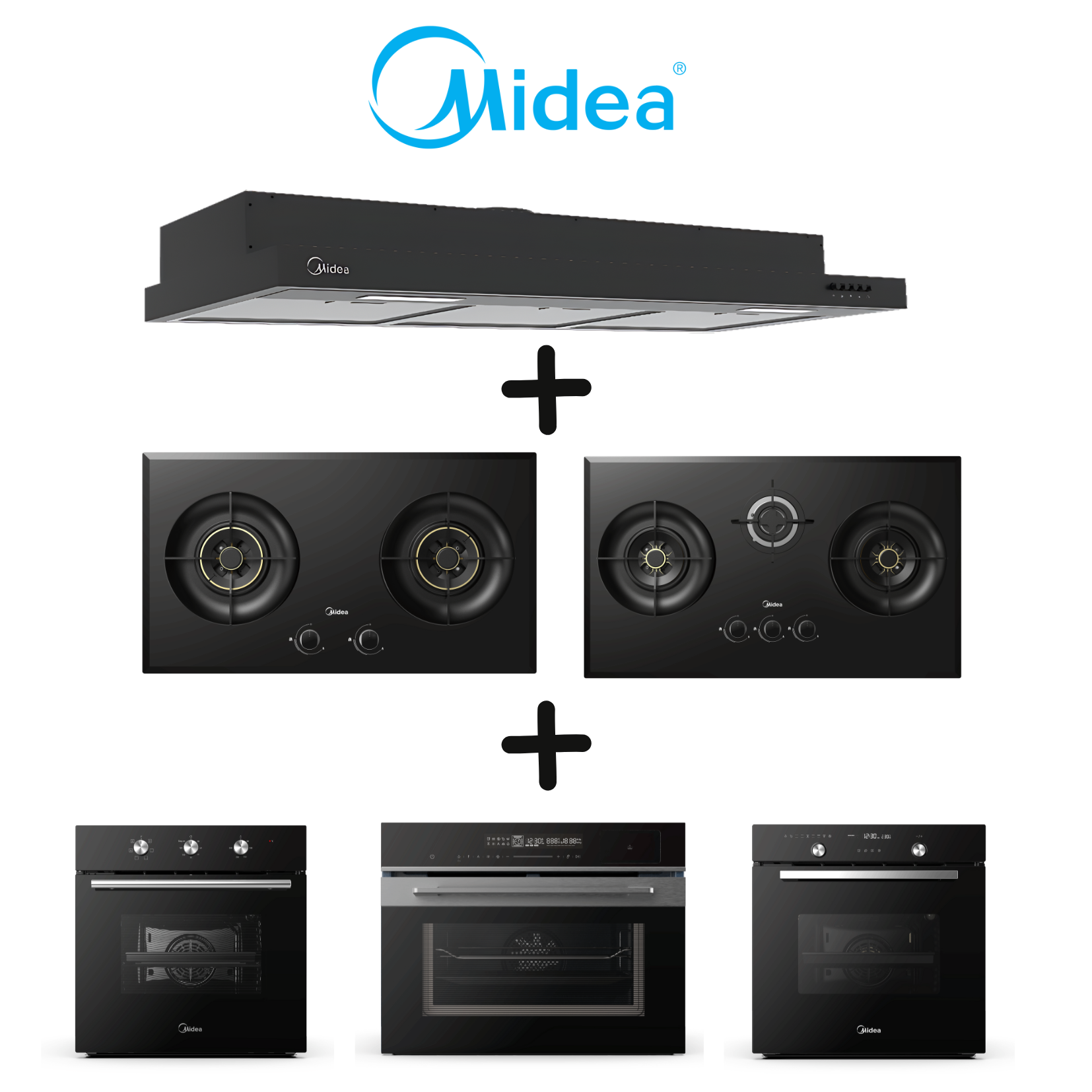 Midea MH90F26ET26BB - 90cm Slimline Hood + Hob + Oven Bundle