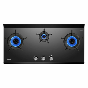 The Rinnai RB-3CGN 85cm 3 Burner Built-In Hob, made in Japan, offers high heat efficiency with a wide range of flame control. It ensures stable performance even in windy conditions, perfect for delicate simmering. Featuring durable cast iron pan supports and easy cleaning.