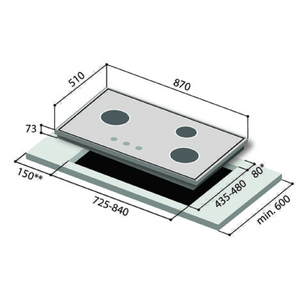 Cut-Out Dimensions (mm): 725 - 840 (W) x 435 - 480 (D) x 110 (R)