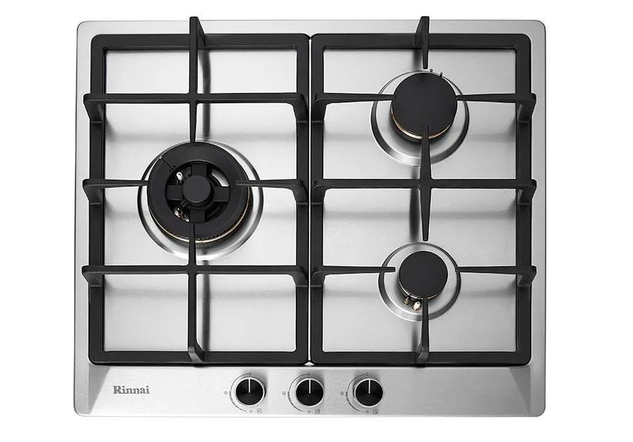 Rinnai RB-63SSV-DL (DC) / RB-63SSV-DR (DC) - 58cm 3 Burner Built-In Hob Stainless Steel Top Plate
