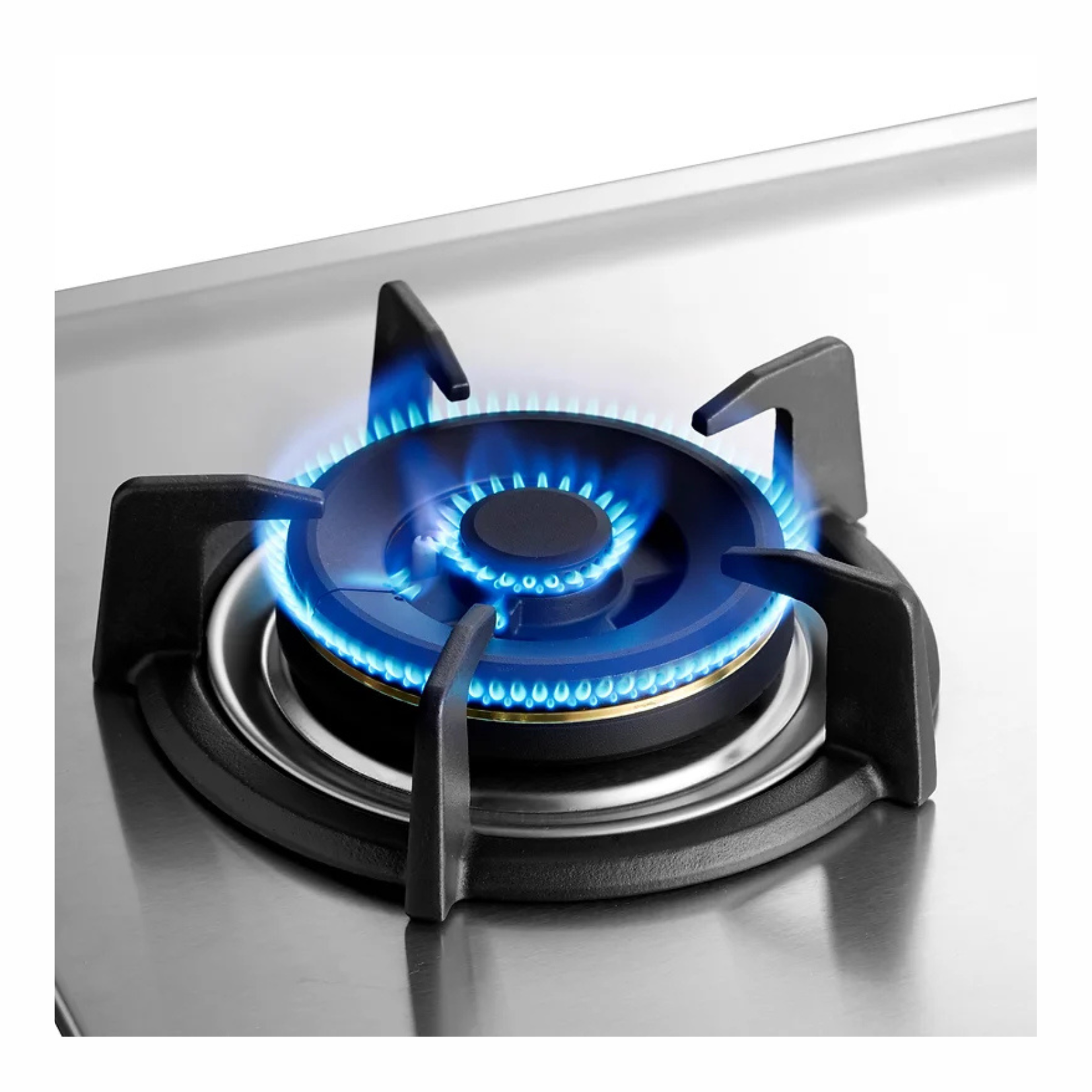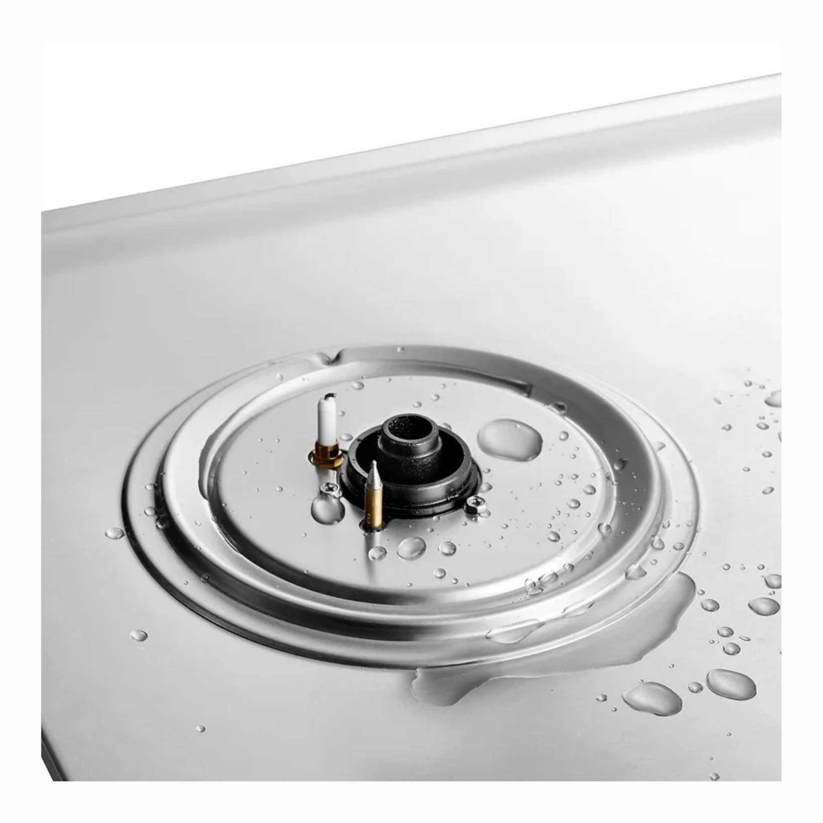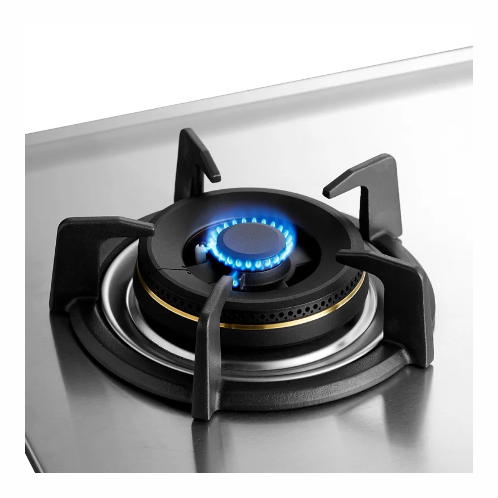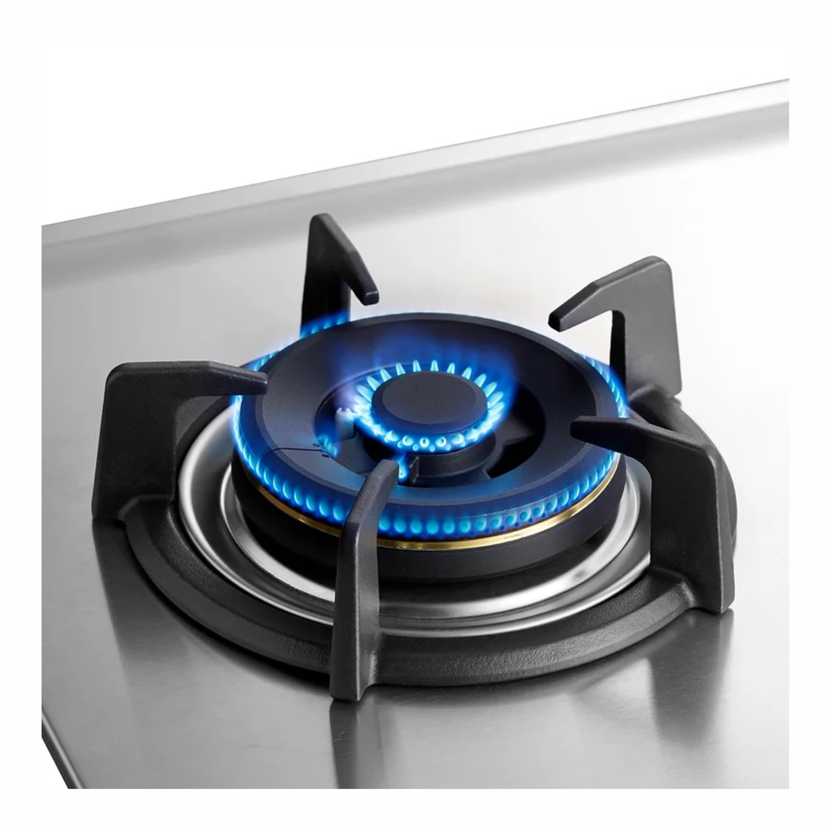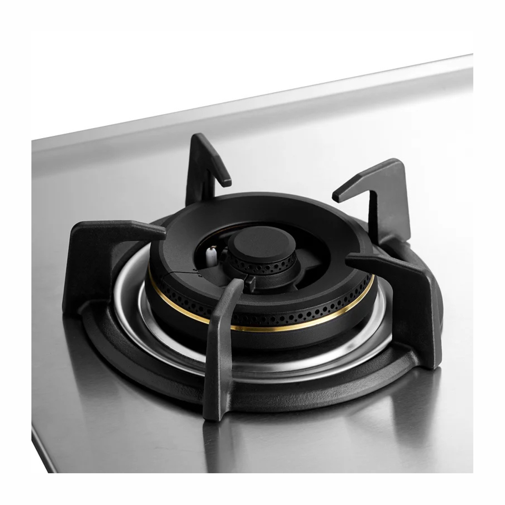 The Rinnai RB-72S is a 76cm 2-burner built-in hob with a stainless steel top plate. It features flexible cut-out options, simmer control, sealed burners, and a safety device. With cast iron pan supports and battery ignition, it ensures reliable, safe, and efficient cooking.