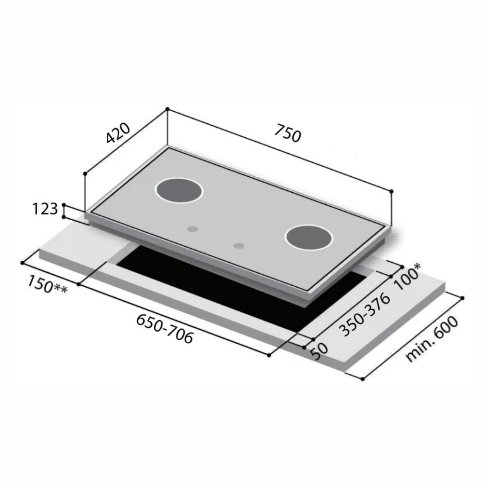 Cut-Out Dimensions (mm): 650-706 (W) x 350 - 376 (D)