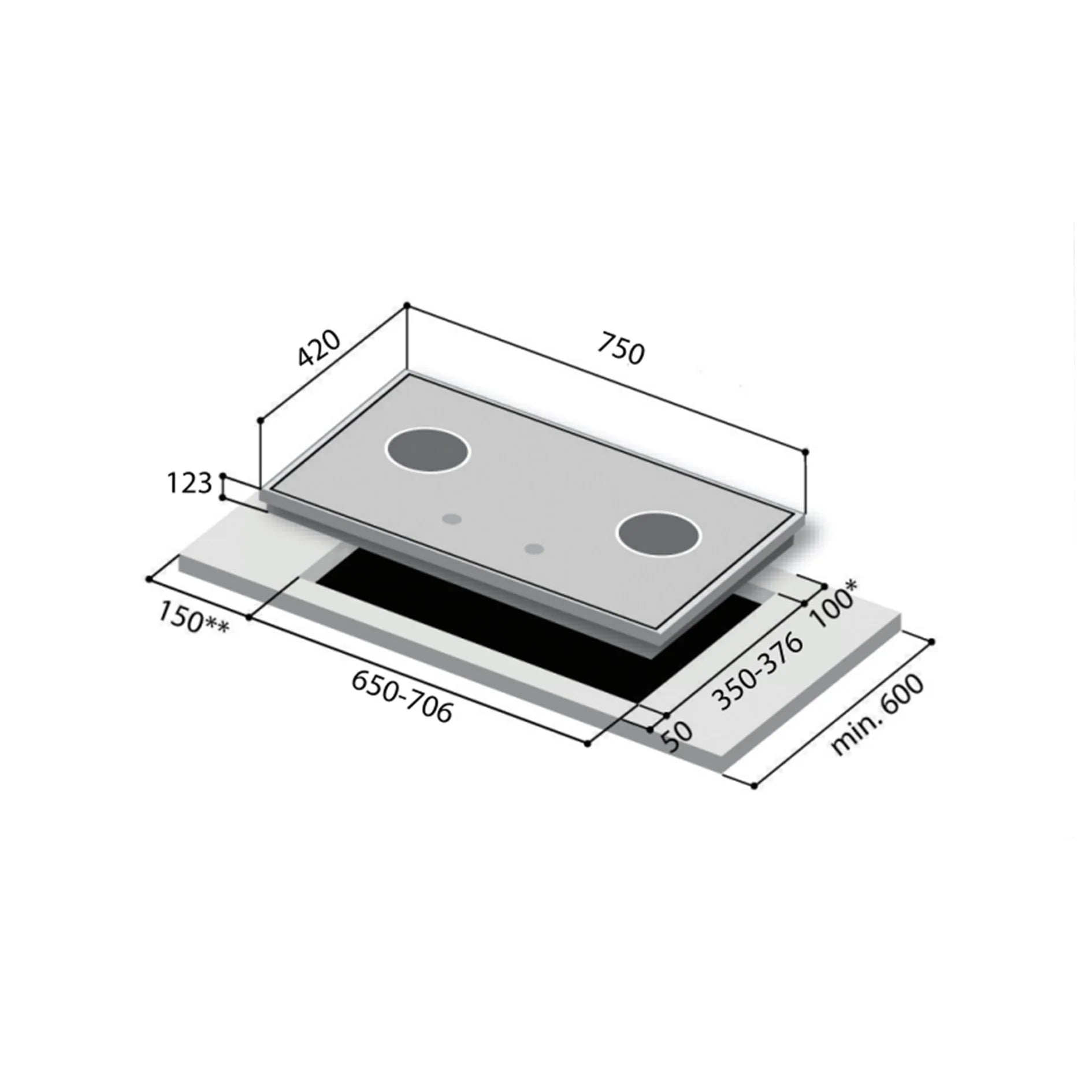 Product Dimensions (mm): 750 (W) x 420 (D) x 123 (H)
