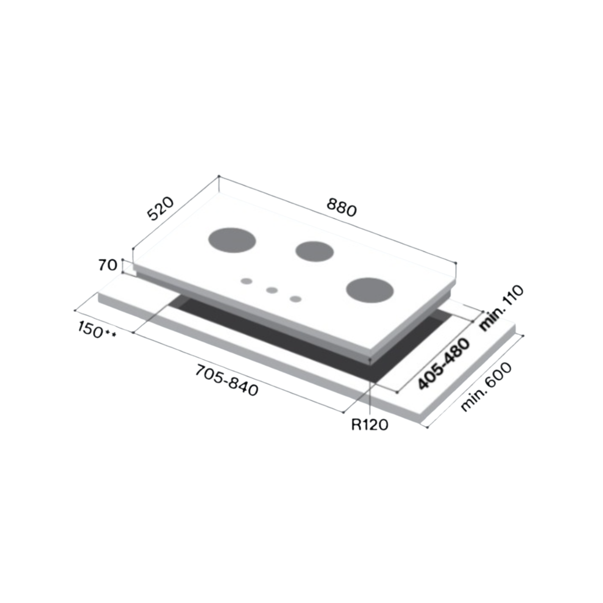 Cut-Out Dimensions (mm): 650-730 (W) x 350-410 (D)