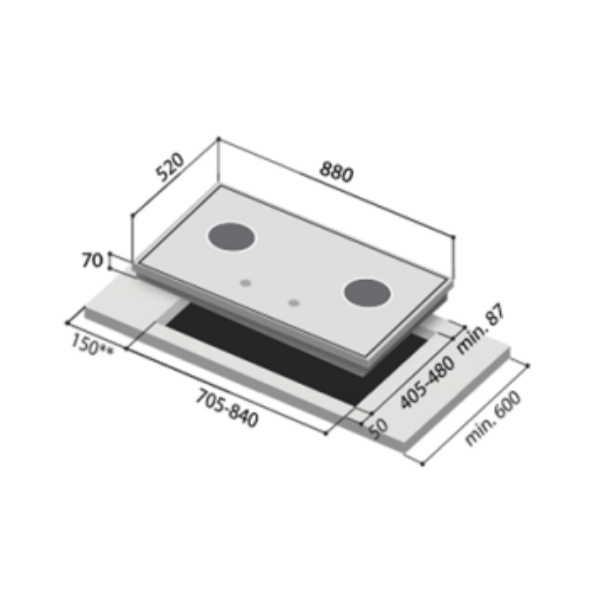 Cut-Out Dimensions (mm): 705 - 840 (W) x 405 - 480 (D)