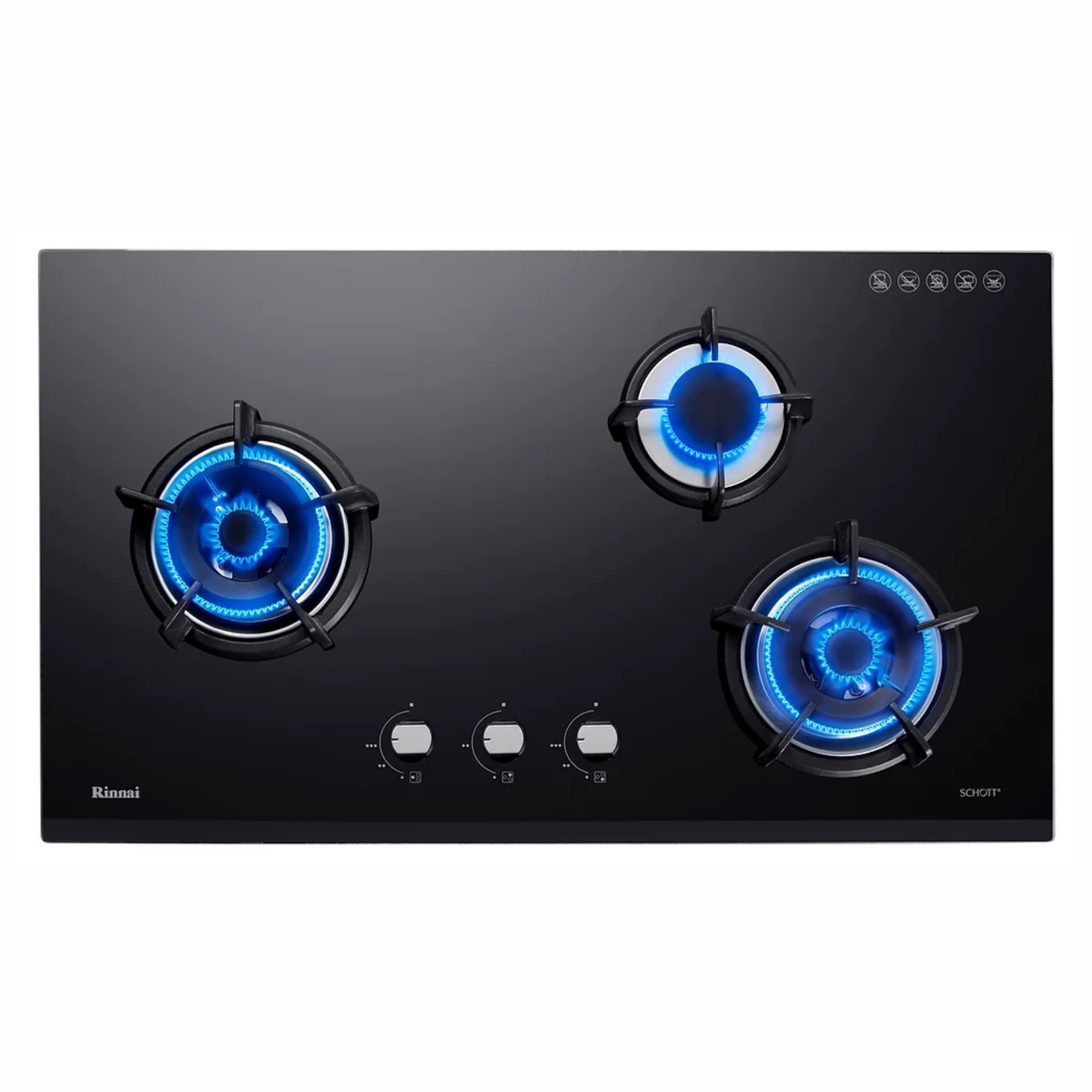 Rinnai RB-93UG - 88cm 3 Burner Built-In Hob Glass Top Plate