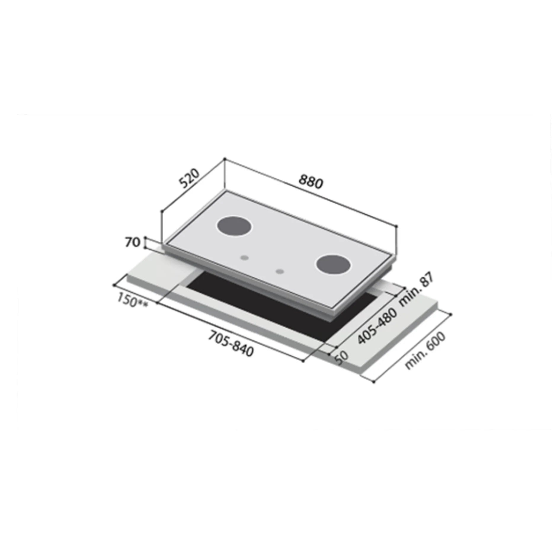 Cut-Out Dimensions (mm): 705 - 840 (W) x 405 - 480 (D)