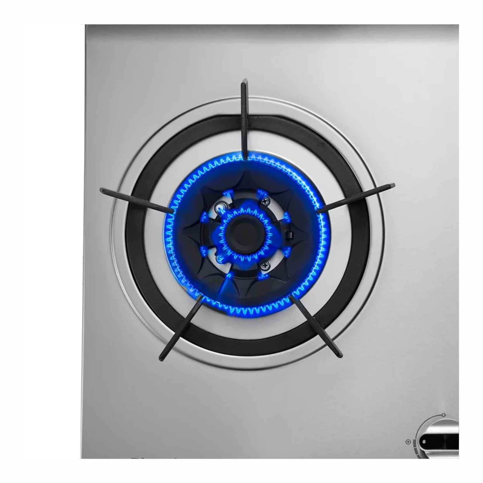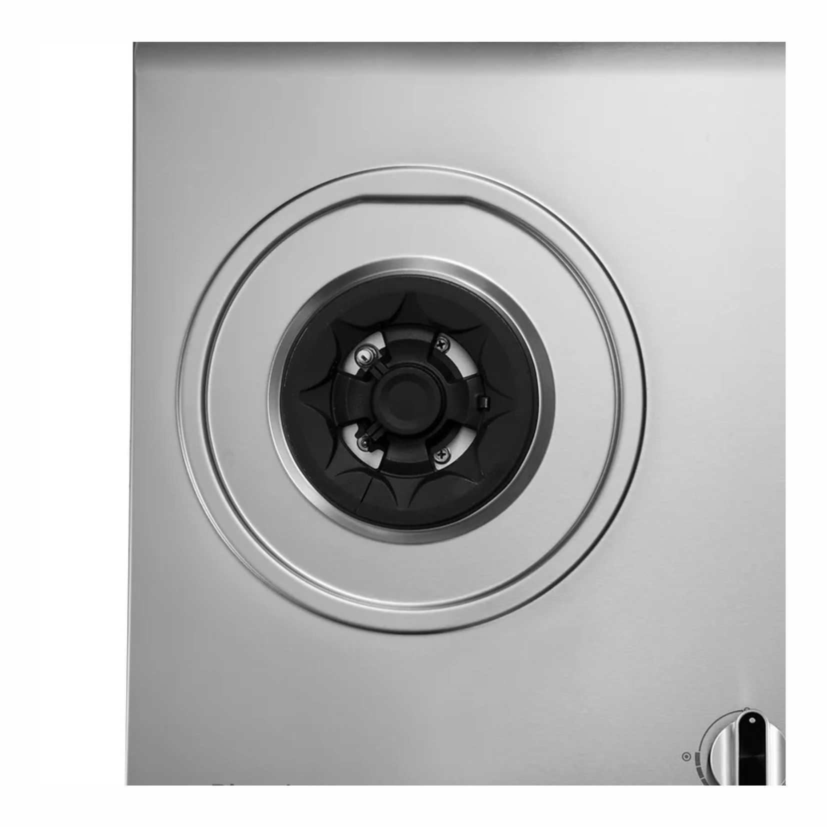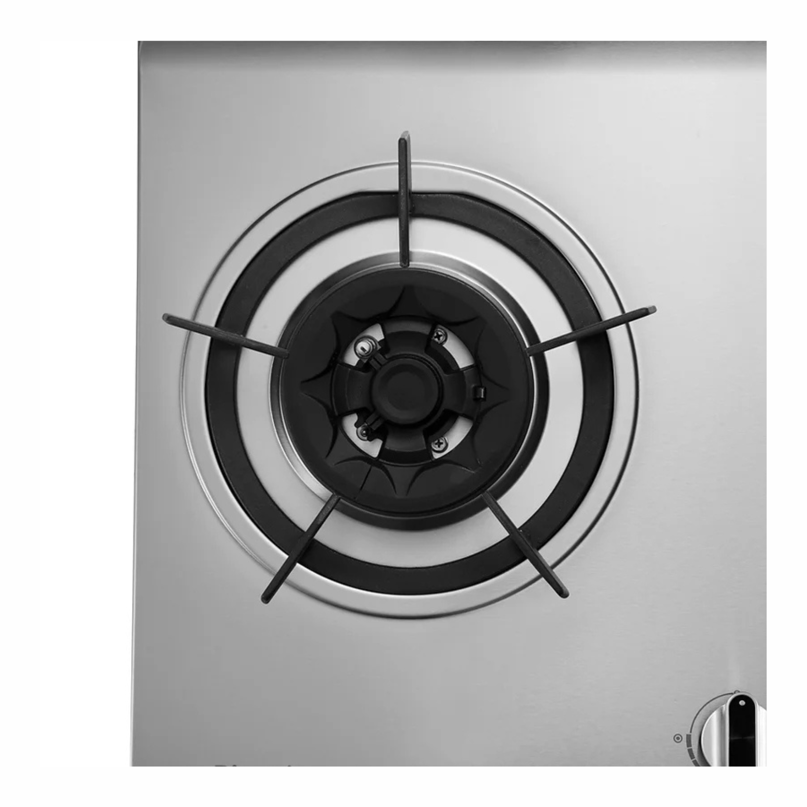 The Rinnai RB-983S 88cm 3 Burner Built-In Hob features a durable stainless steel top plate with a flexible cut-out design for easy installation. It offers double ring sealed burners for powerful, precise cooking, smooth simmer control, and reliable battery ignition. Equipped with matt enamel pan supports, a safety device, and a universal adaptor for both wok and small pot use.