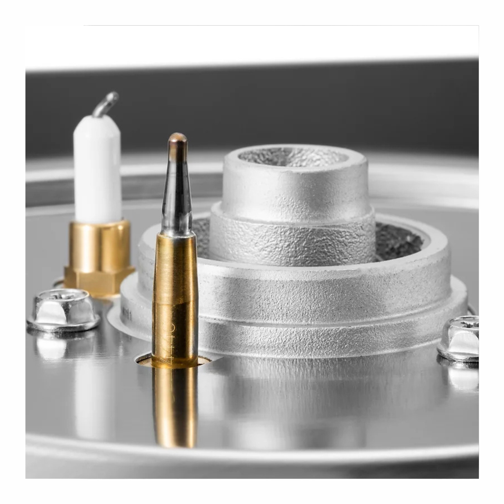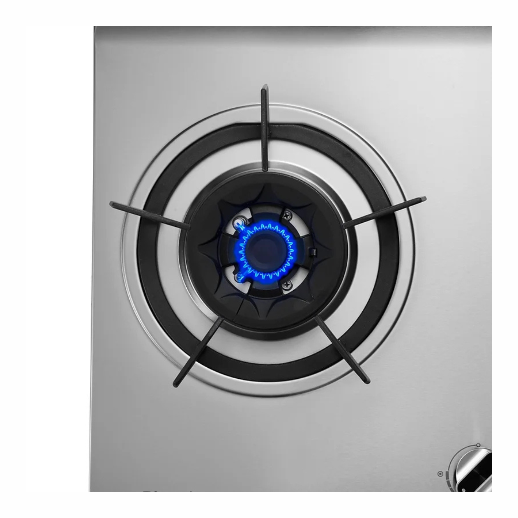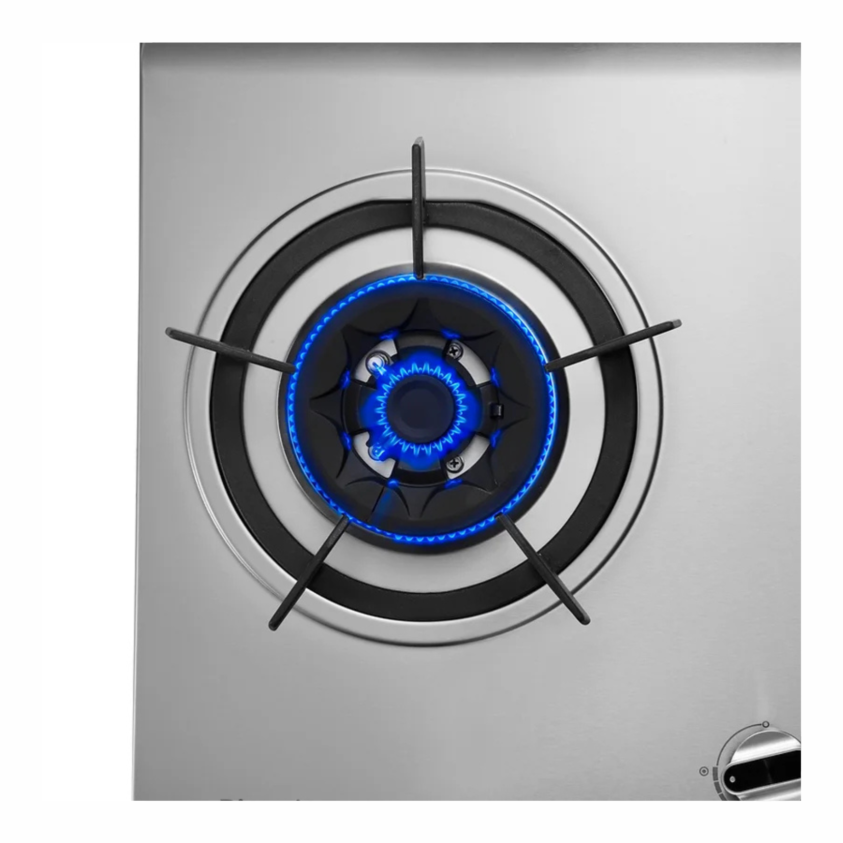 The Rinnai RB-983S 88cm 3 Burner Built-In Hob features a durable stainless steel top plate with a flexible cut-out design for easy installation. It offers double ring sealed burners for powerful, precise cooking, smooth simmer control, and reliable battery ignition. Equipped with matt enamel pan supports, a safety device, and a universal adaptor for both wok and small pot use.