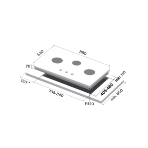 Cut-Out Dimensions (mm): 705 - 840 (W) x 405 - 480 (D)