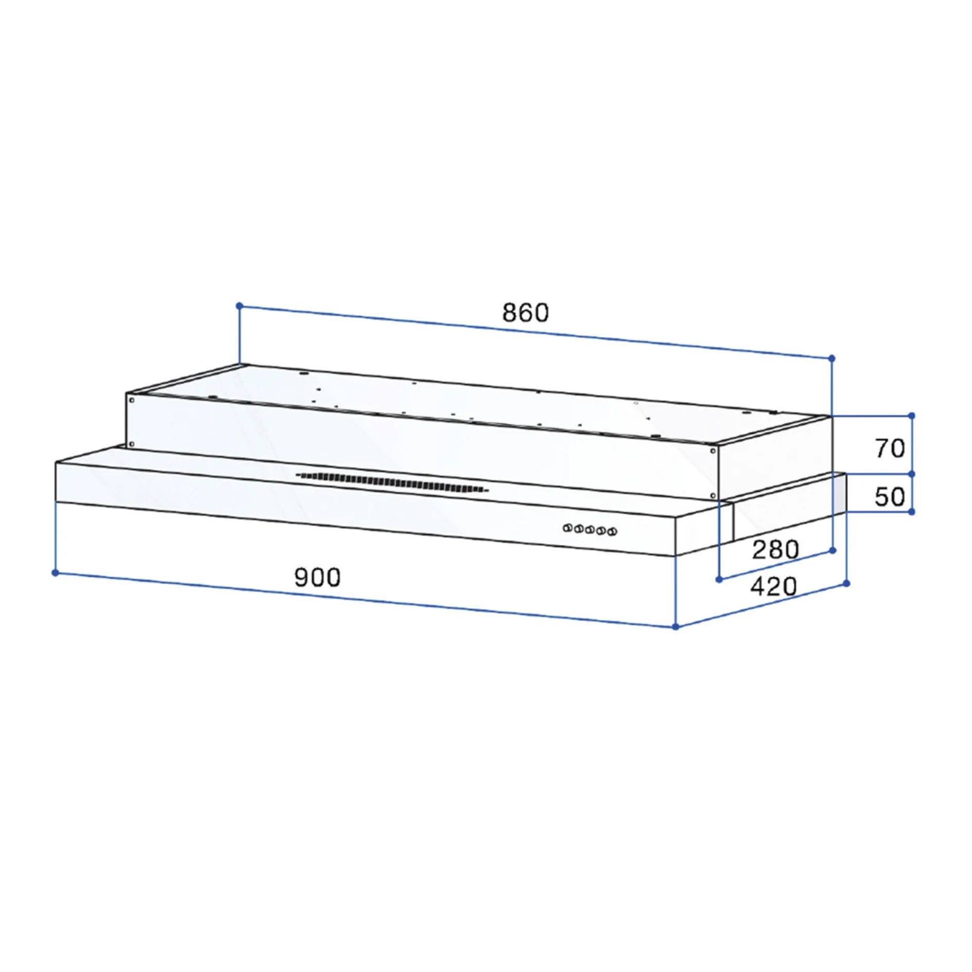 Dimensions (LxWxH): 900mm x 420mm x 120mm
