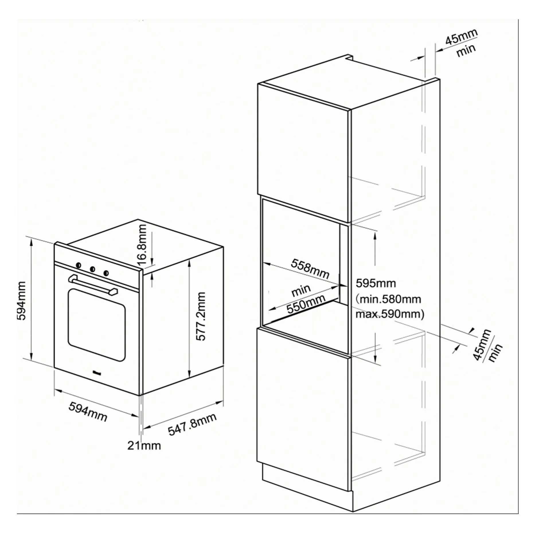 Cut-Out: 558 (W) x 550 (D) x 594 (H)