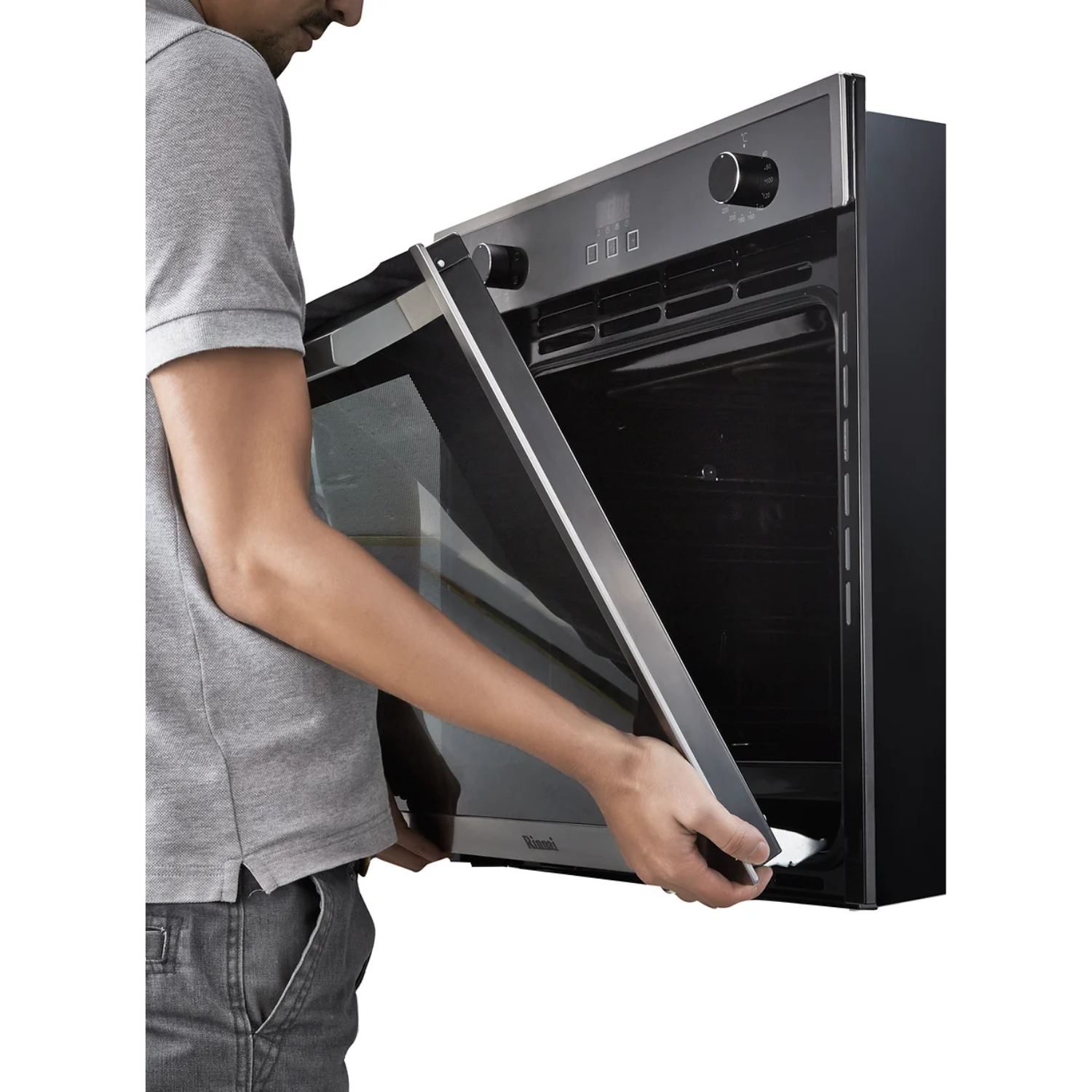 - The Rinnai RO-E6208TA-EM is an 8-function built-in oven featuring an energy-efficient A-class rating and a spacious 70L cavity. It boasts black mirror glass with a stainless steel frame, rotary knobs with glass touch control, and a cooling fan. Functions include conventional heating, grill & fan, defrost, and more.