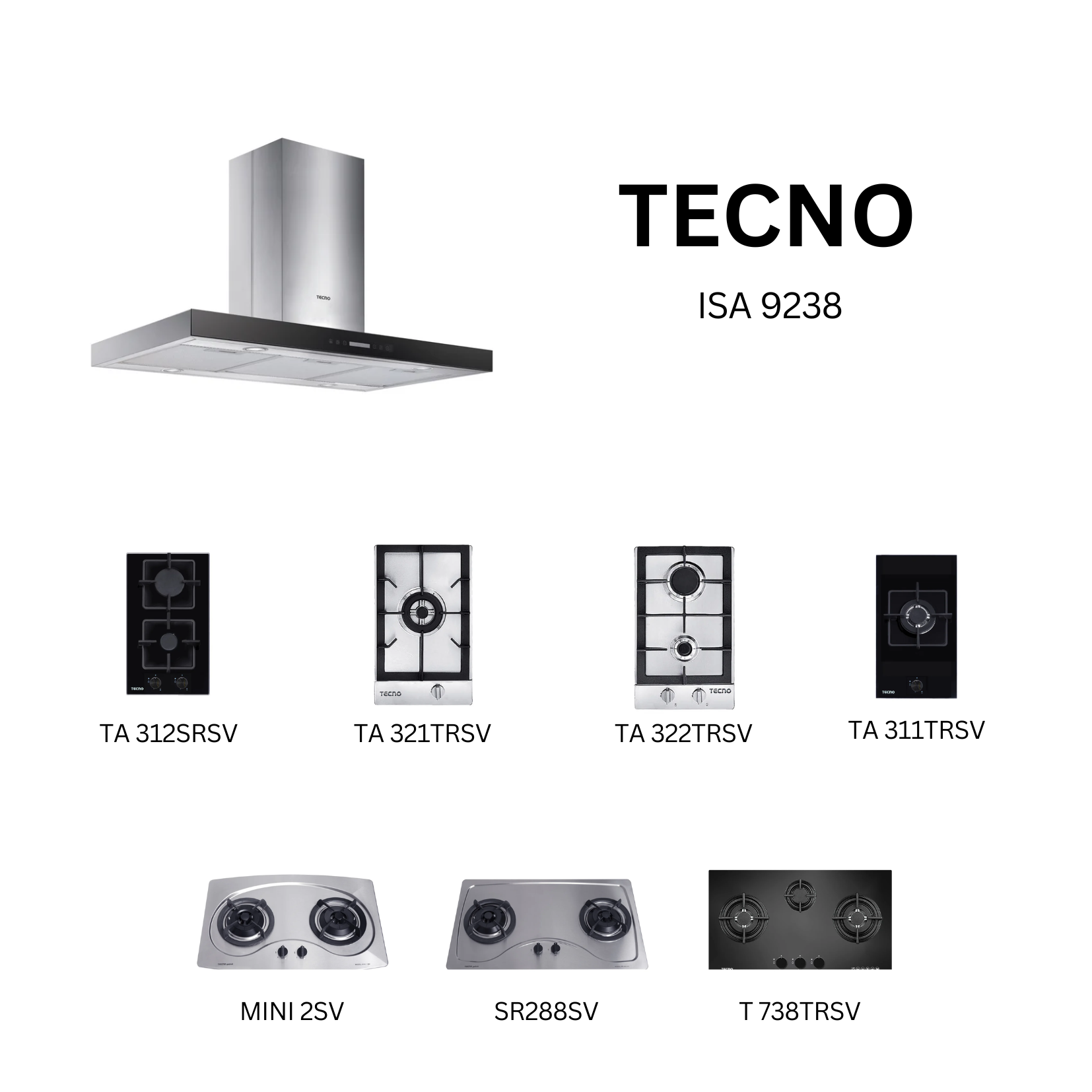 Tecno ISA 9238 - 90cm Black Island Hood + Hob Bundle