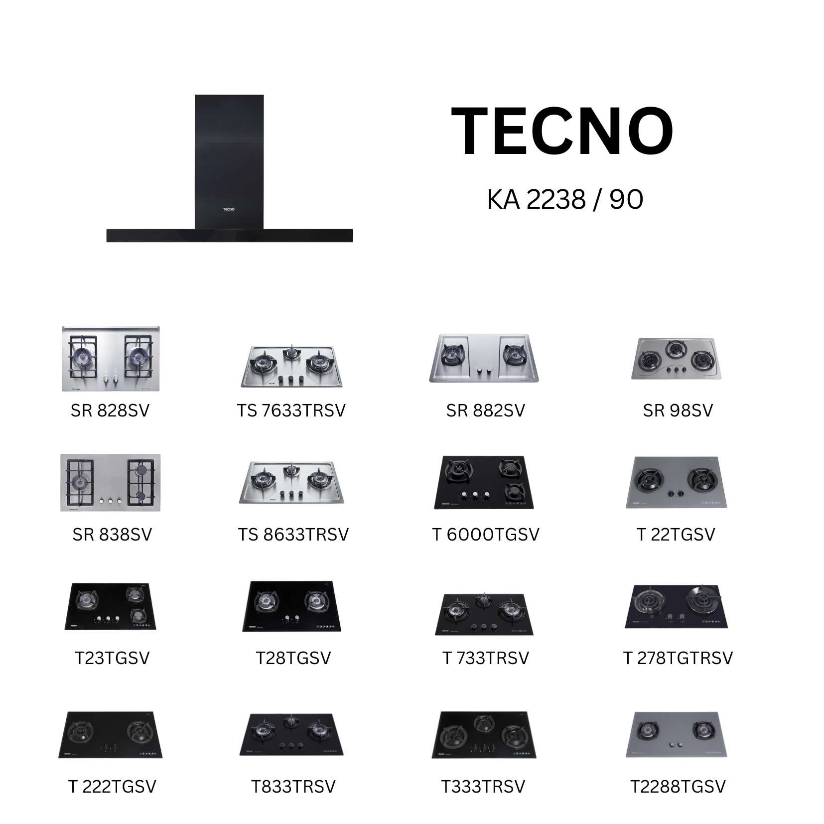 Tecno KA 2238 /90 - 90cm Stainless Steel Chimney Hood + Hob Bundle 2