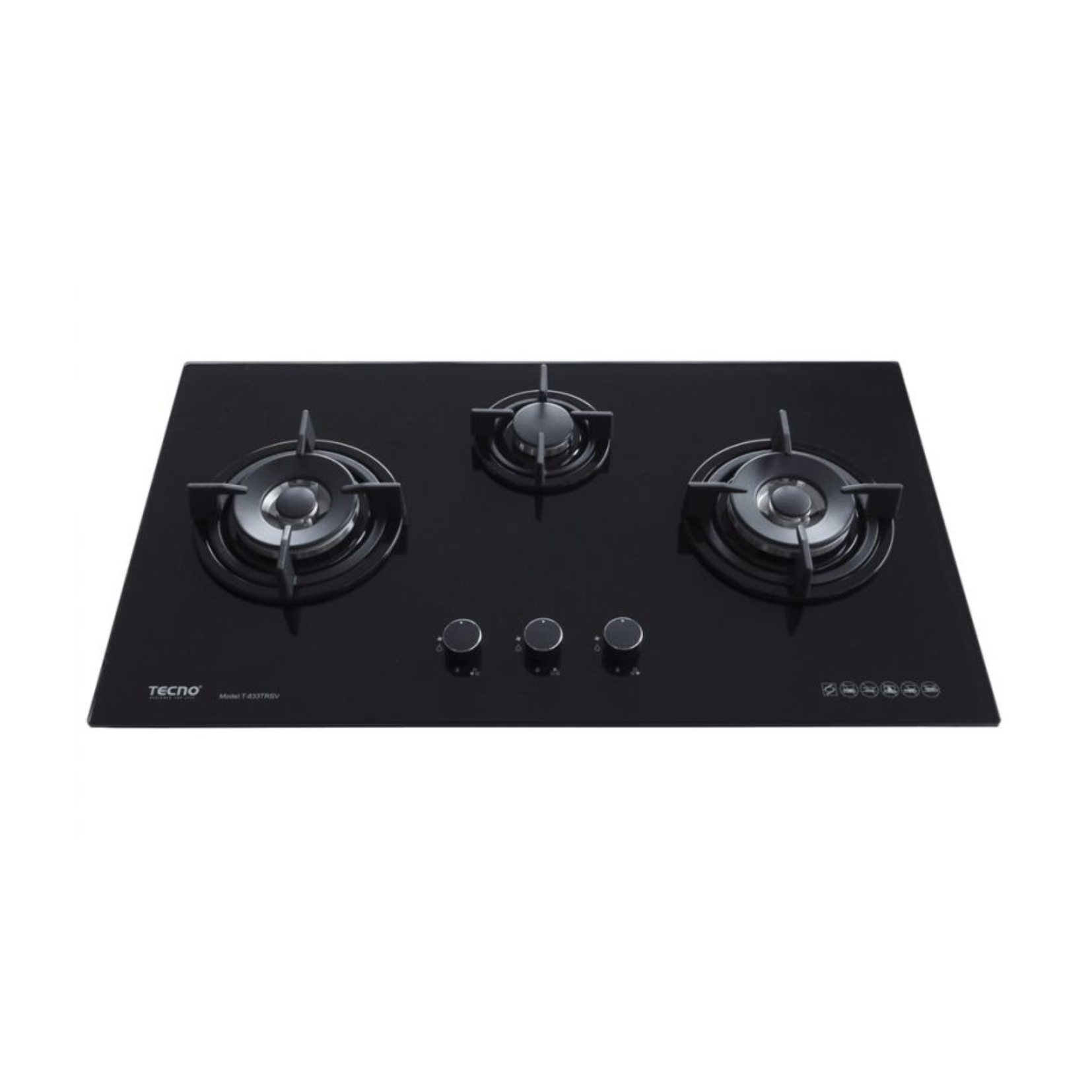 Tecno T833TRSV - 86cm Tempered Glass Hob 3 Burners
