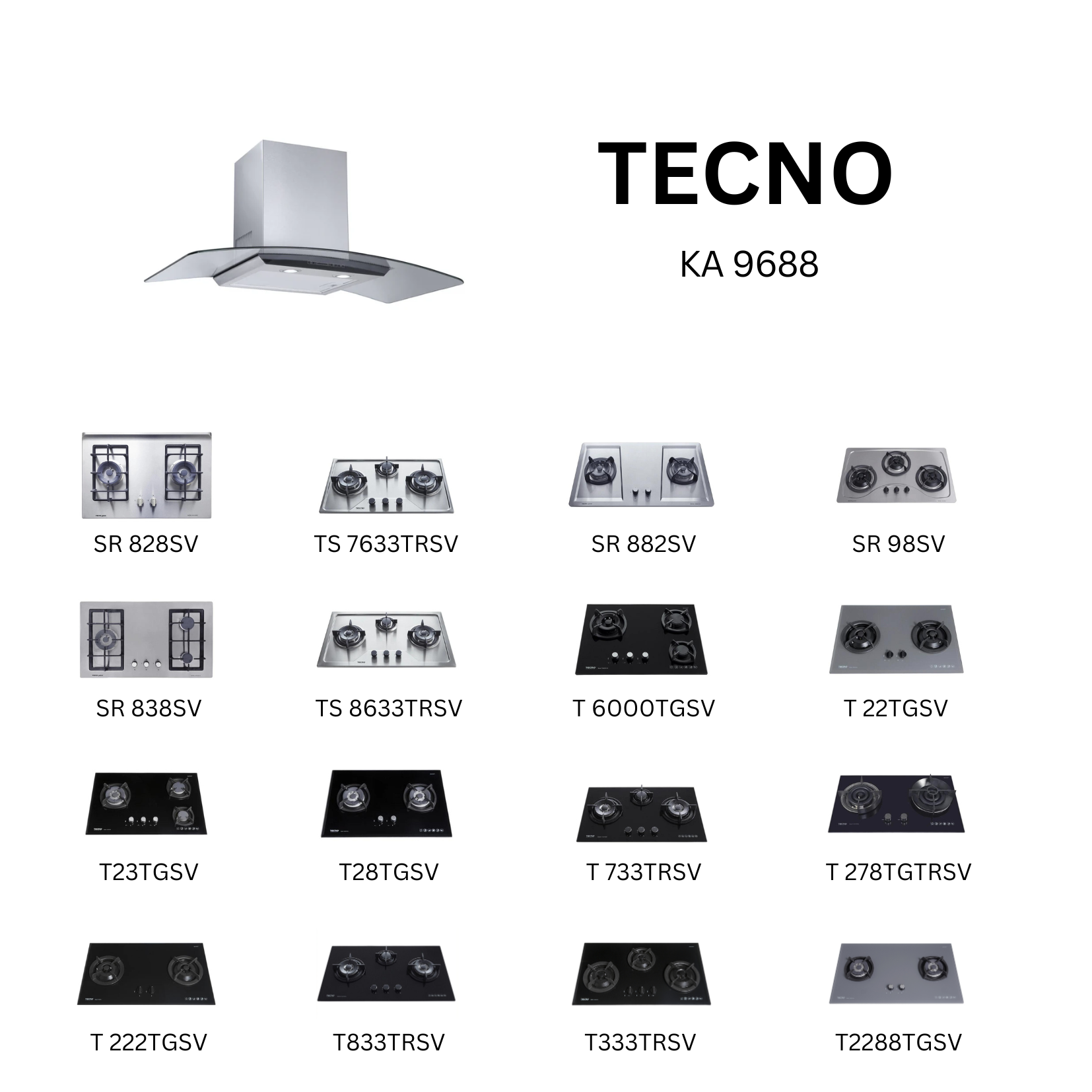 Tecno KA 9688 - 90cm Stainless Steel Chimney Hood + Hob Bundle 2