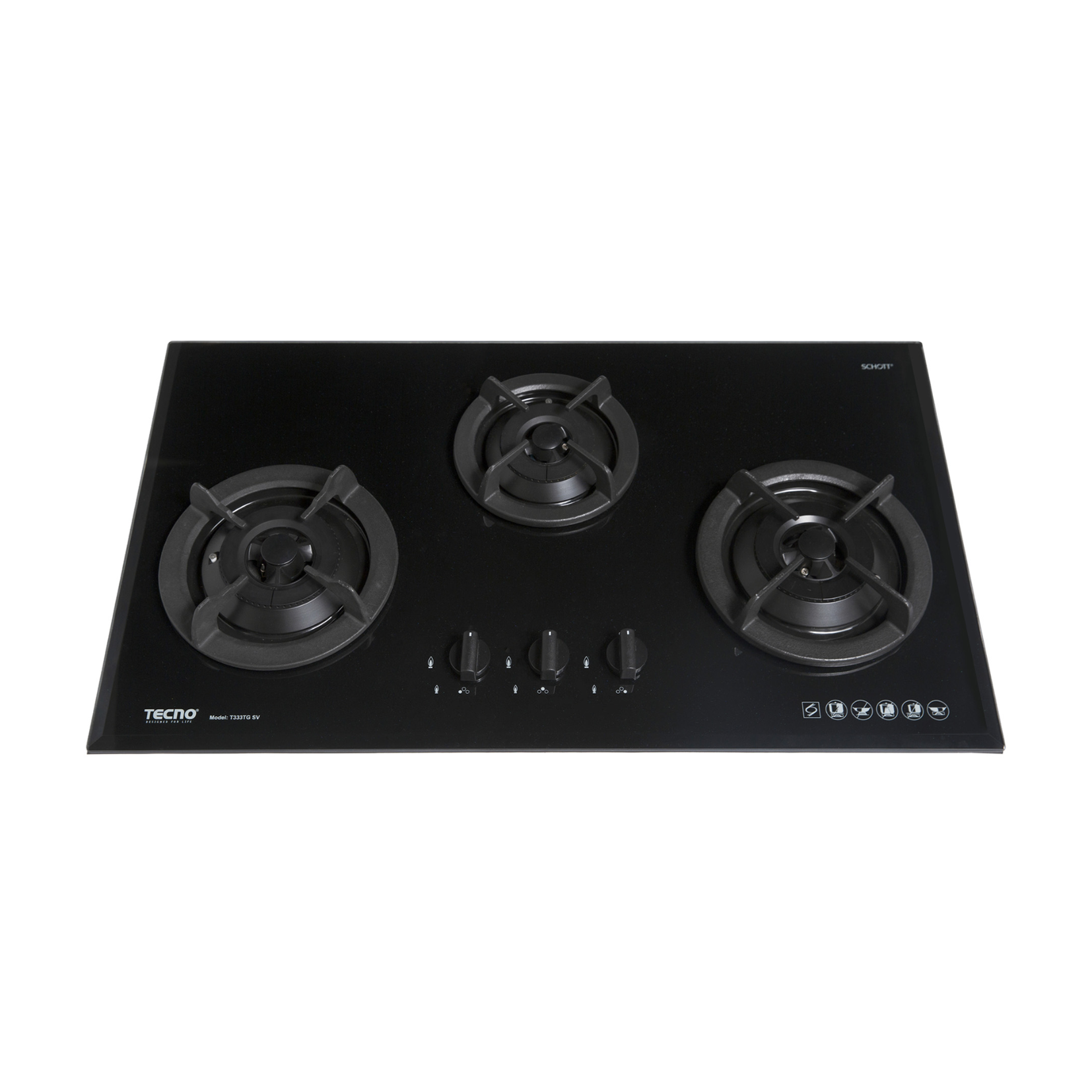 Tecno T 733TRSV - 76cm Tempered Glass Hob 3 Burners