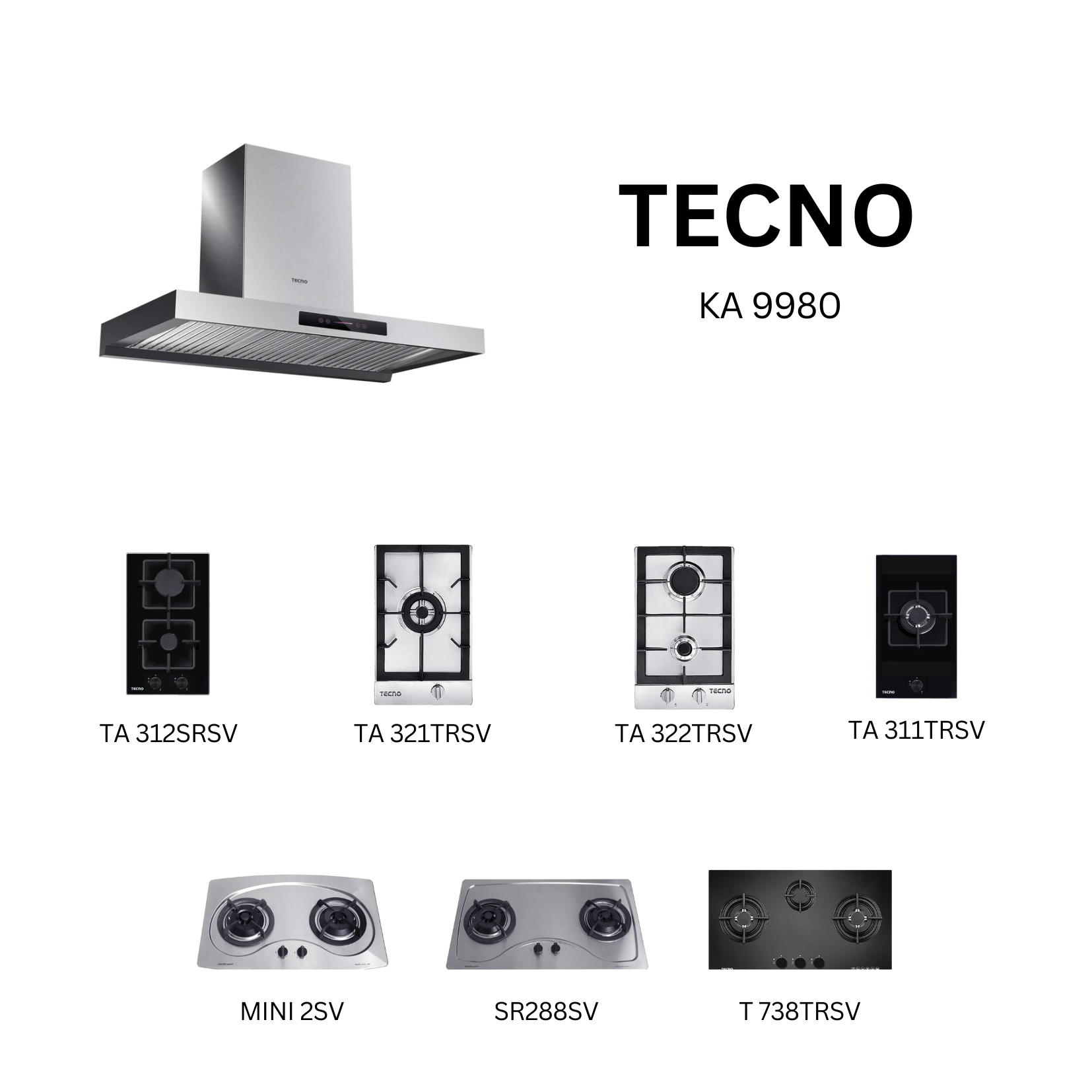 Tecno KA 9980 - 90cm Stainless Steel Chimney Hood + Hob Bundle