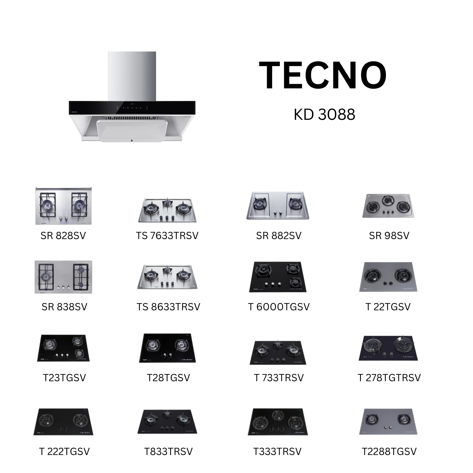 Tecno KD 3088 - 90cm Stainless Steel Chimney Hood + Hob Bundle 2
