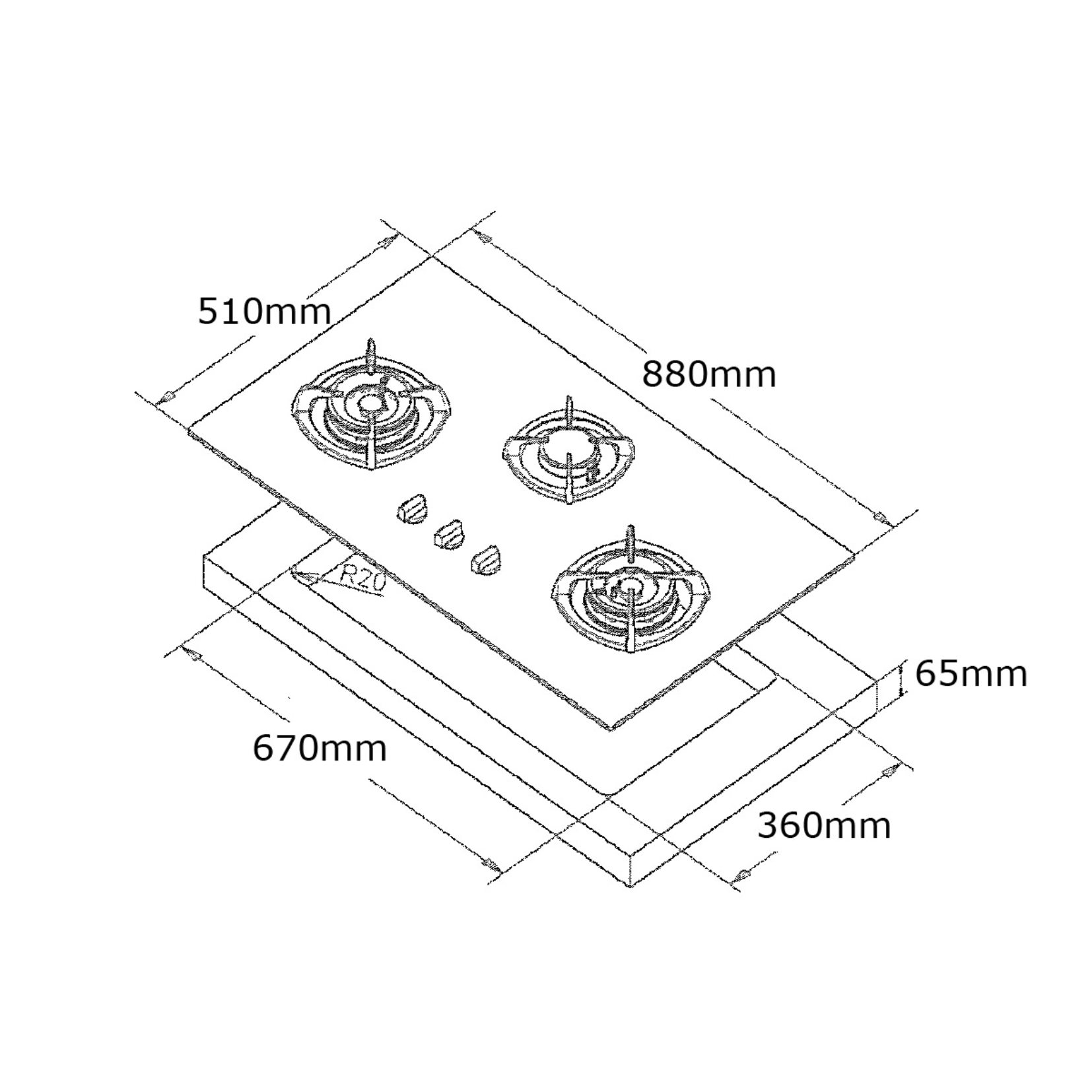 Cut-Out Dimensions (WxDxH): 670mm x 360mm x 65mm
