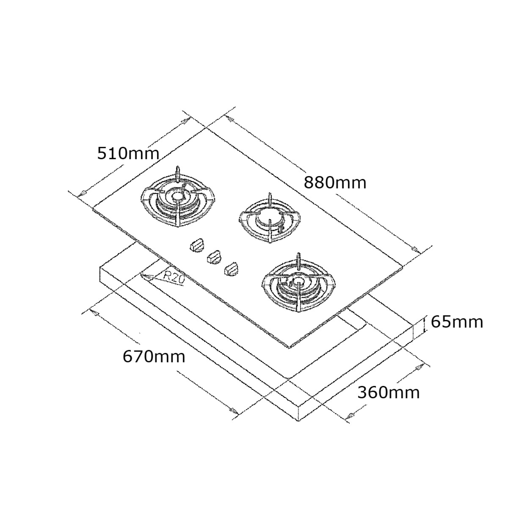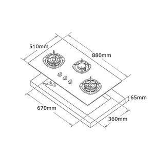 Cut-Out Dimensions (WxDxH): 670mm x 360mm x 65mm
