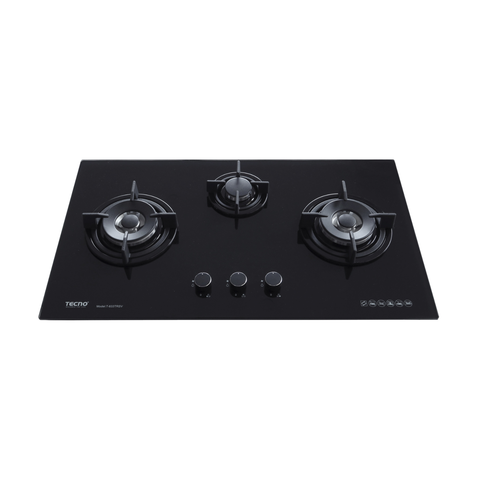 Tecno T 833TRSV - 86cm Tempered Glass Hob 3 Burners