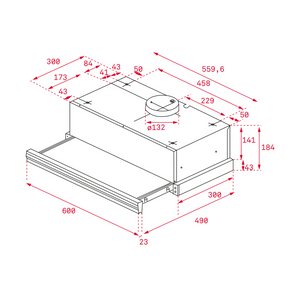 Product Dimensions (LxWxH) : 300-490 x 600 x 184 mm