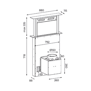 Product Dimensions (LxWxH): 880 x 115 x 335 mm