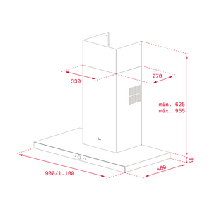 Teka DLH 1185 T - 110cm Stainless Steel Chimney Hood