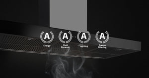 The 110cm ultraslim decorative Chimney Hood from Teka delivers state-of-the-art 4A performance, effectively keeping your kitchen clean while saving you money on energy bills. Its advanced filtration technology, featuring a decorative metallic filter and activated charcoal filter, ensures maximum extraction efficiency by absorbing up to 98% of grease and odors. This maintains the cleanliness and hygiene of your hood, keeping your kitchen fresh and inviting. Designed for convenience, the metallic filters are dishwasher-safe, allowing effortless cleaning. Teka's EcoPower motors maximize extraction efficiency with lower energy consumption, significantly reducing your electrical bill.