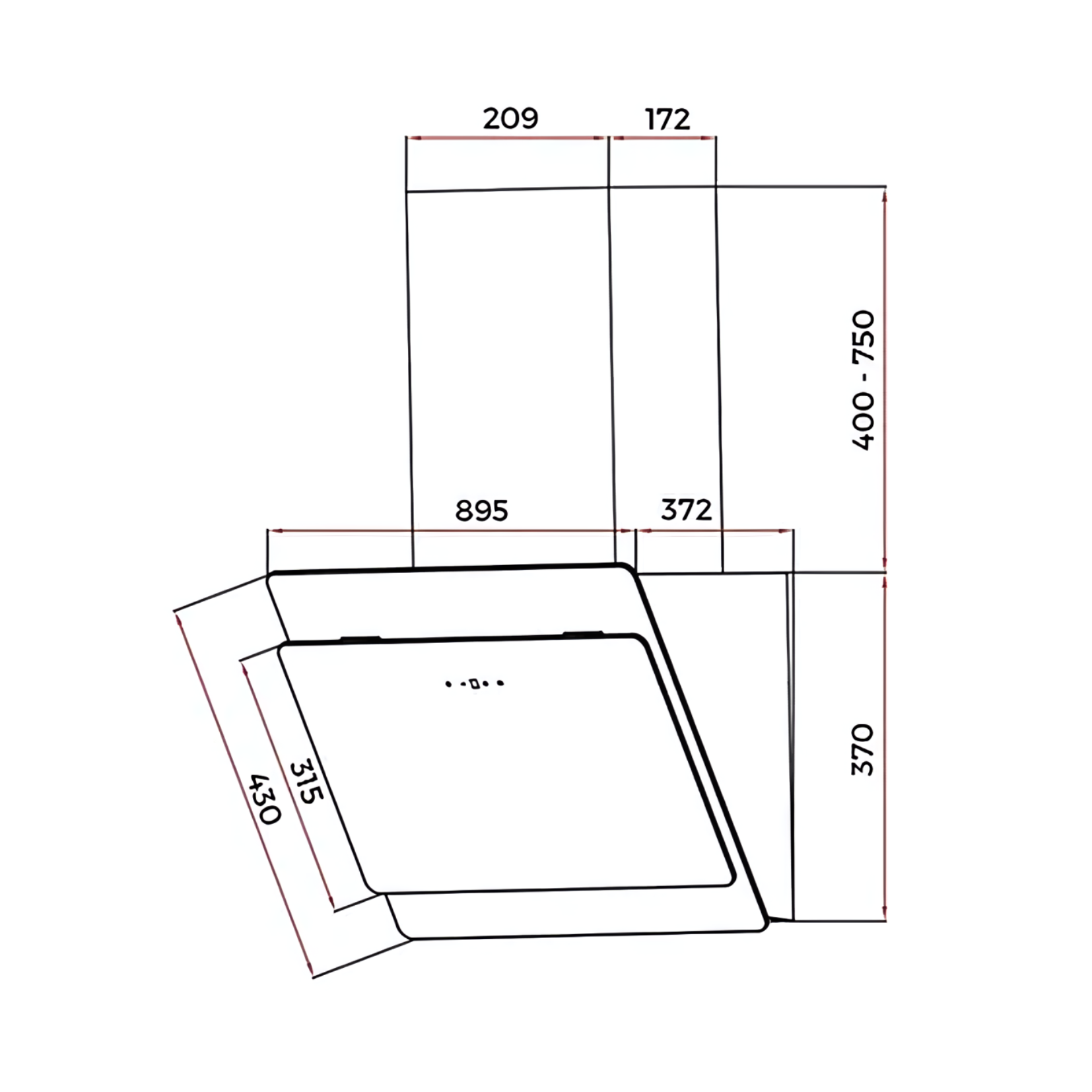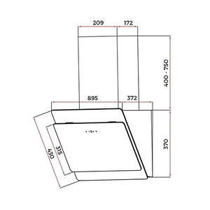 Product Dimensions (LxWxH) : 895 x 372 x 370 + 400/750 mm