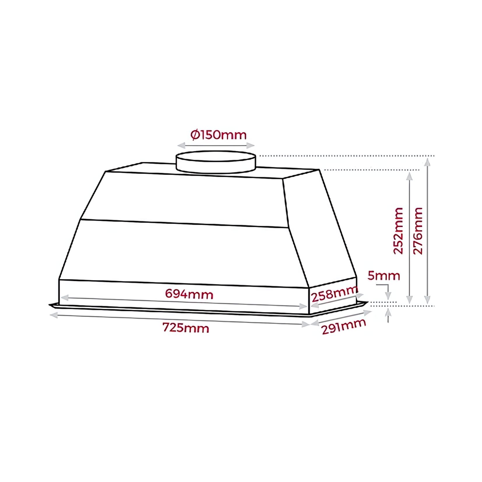 Product Dimensions (LxWxH) : 725 x 291 x 276mm
