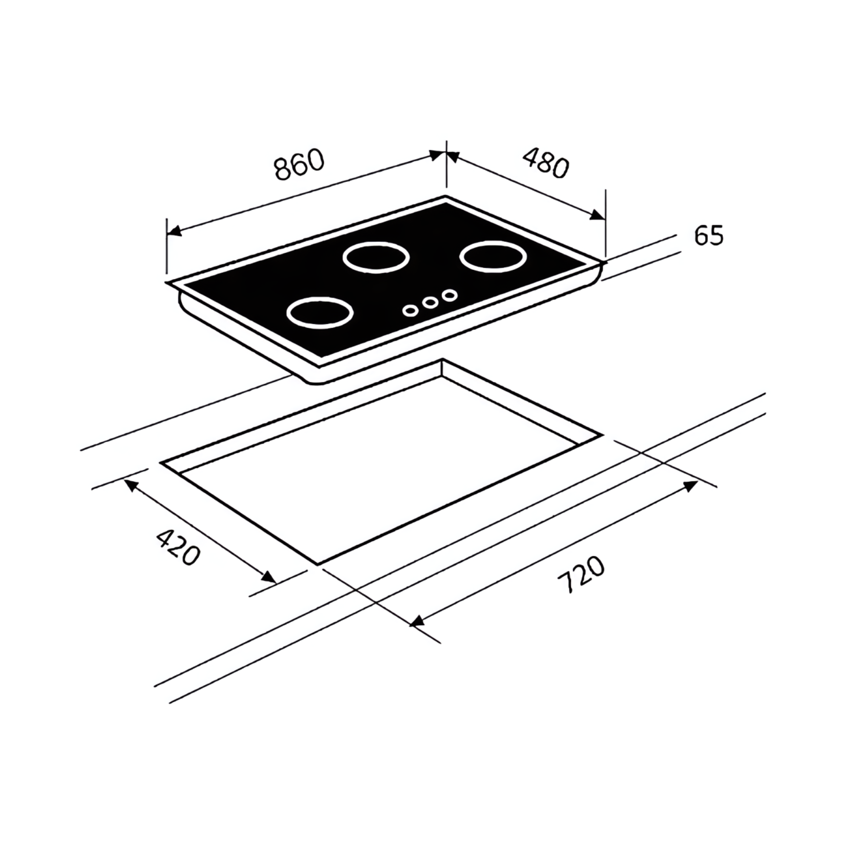 Cut-Out Dimensions (WxDxH): 720 x 420 x 65 mm