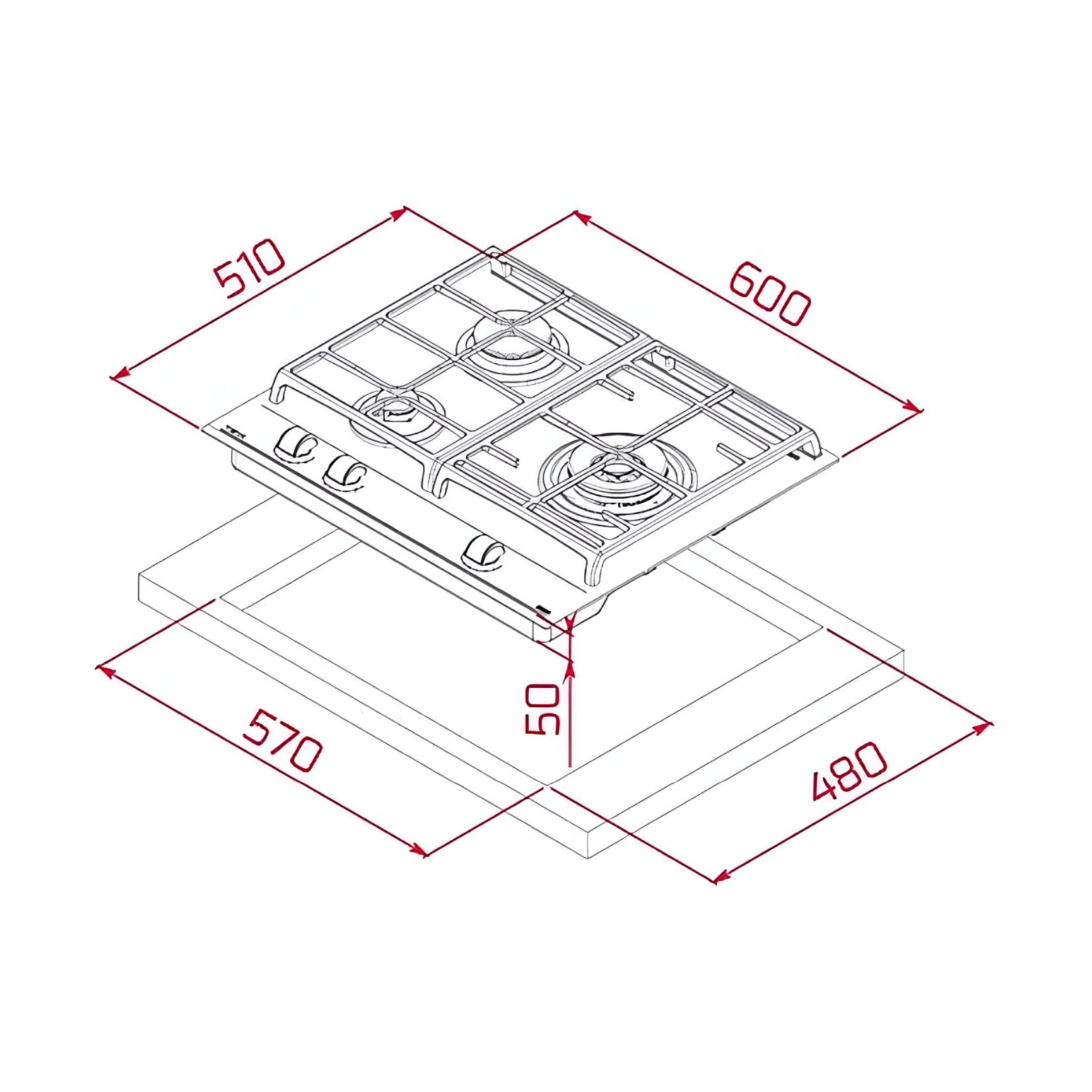 Cut-Out Dimensions (WxDxH): 570 x 480 x 49 mm
