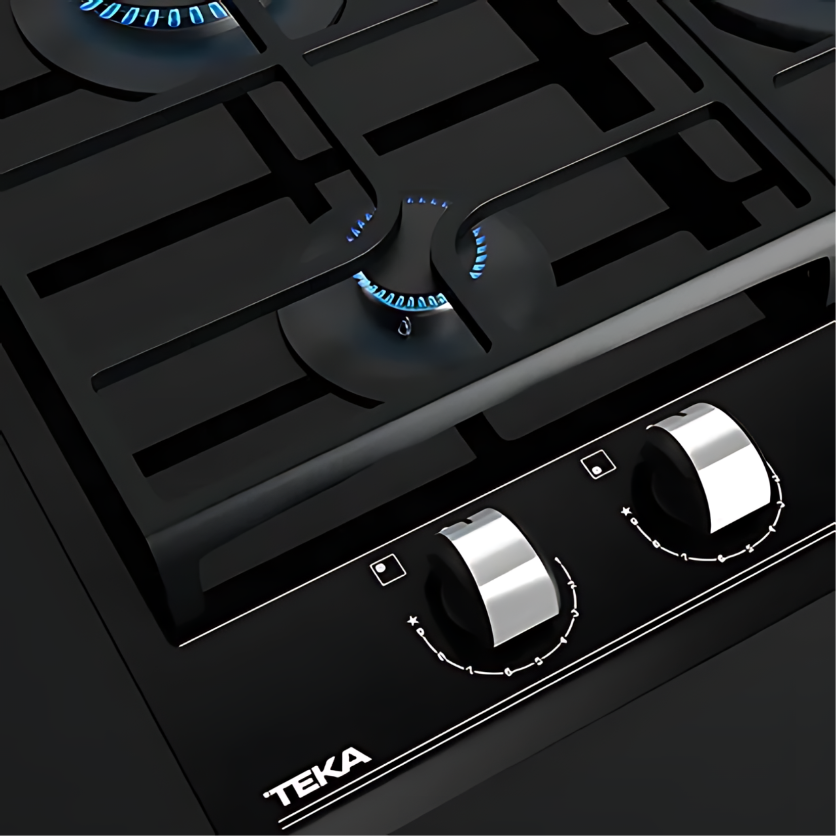 Introducing Teka's 60cm Gas On Glass Hob with 3 Burners, offering precise cooking control and stylish design. With 9 power levels ExactFlame technology and bevelled front, it ensures accurate flame control for perfect results. Designed with cast iron grids with curves designed to slide every pan from one burner to another with complete freedom. Top off with high efficiency SABAF® burners that reduce gas consumption and carbon monoxide by up to 25%. Cook your favourite recipes while you save money and take care of the environment.