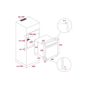- Safety Systems: Panel blocking system, Grill protection, Anti-tip tray system, Safety thermostat