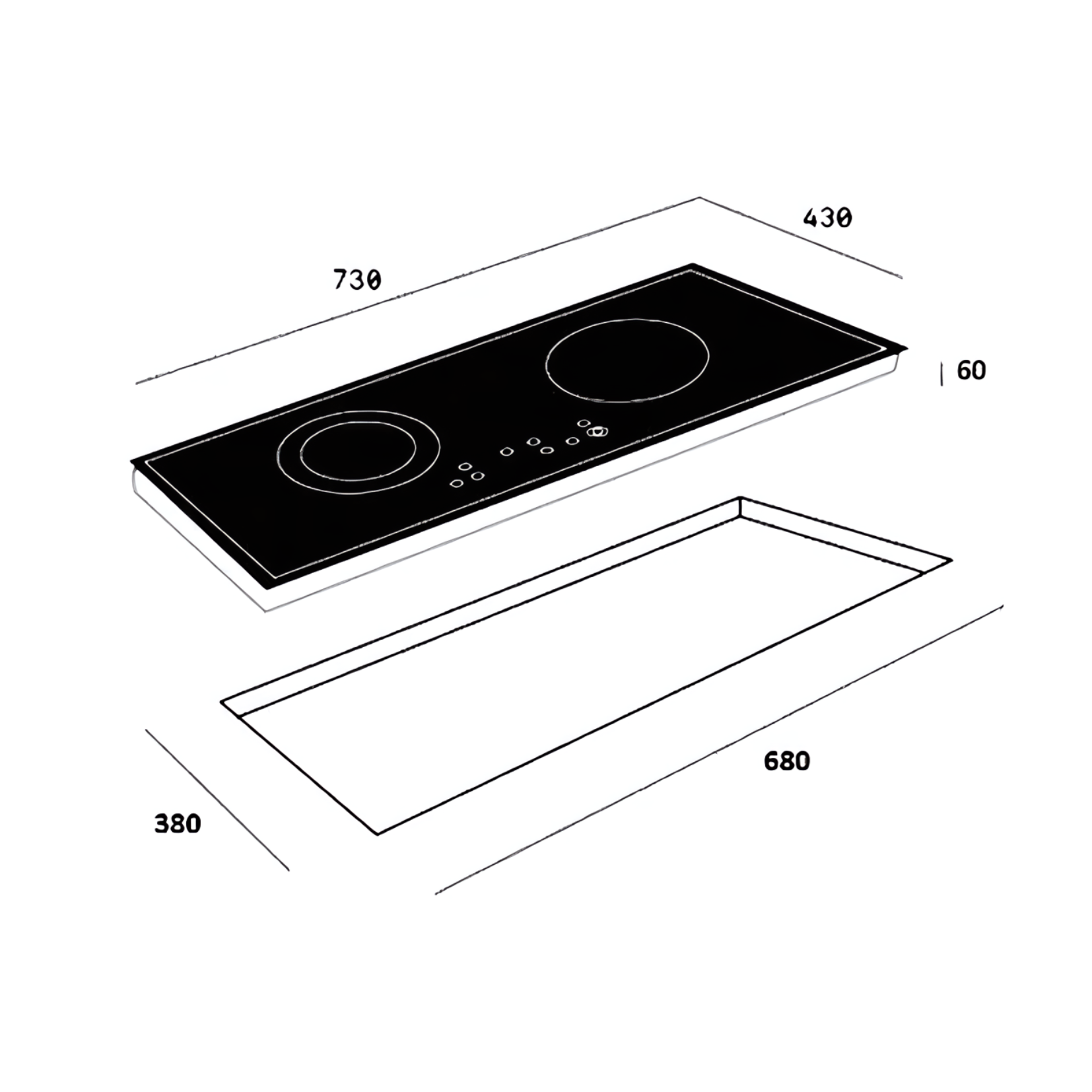 Cut-Out Dimensions (WxD): 680 x 380 mm