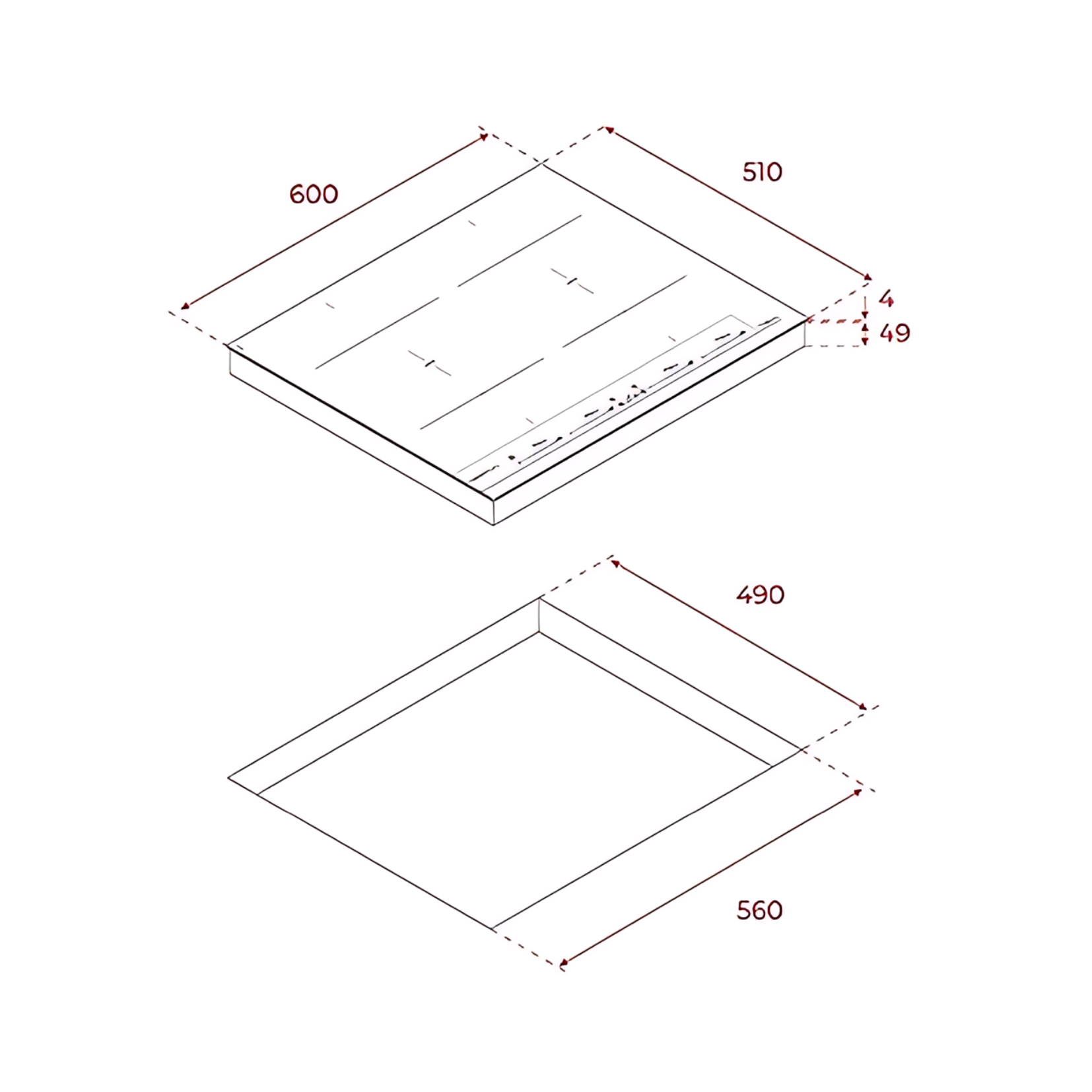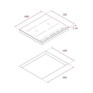 Cut-Out Dimensions (WxDxH): 560 x 490 x 49 mm