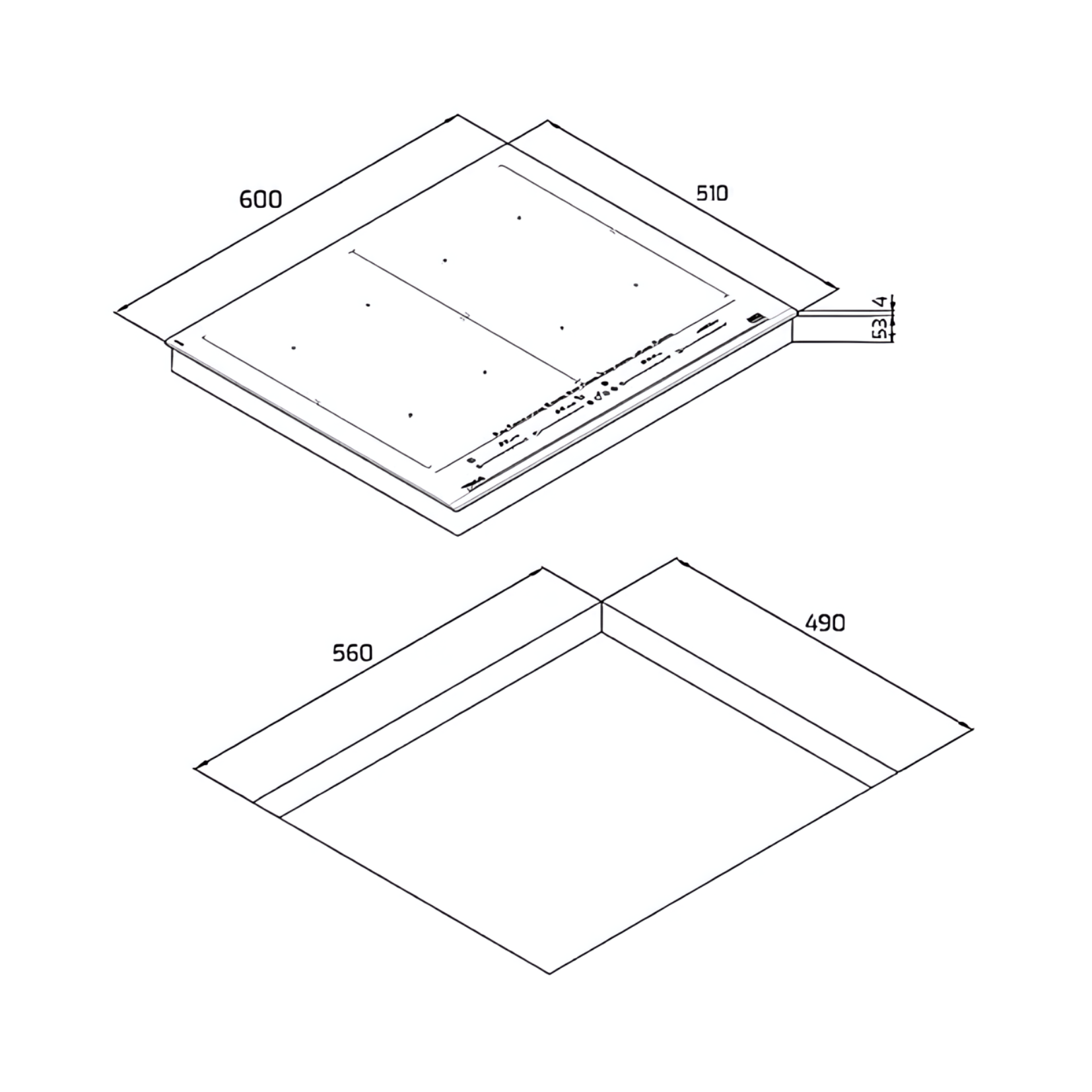 Cut-Out Dimensions (WxDxH): 560 x 490 x 49 mm