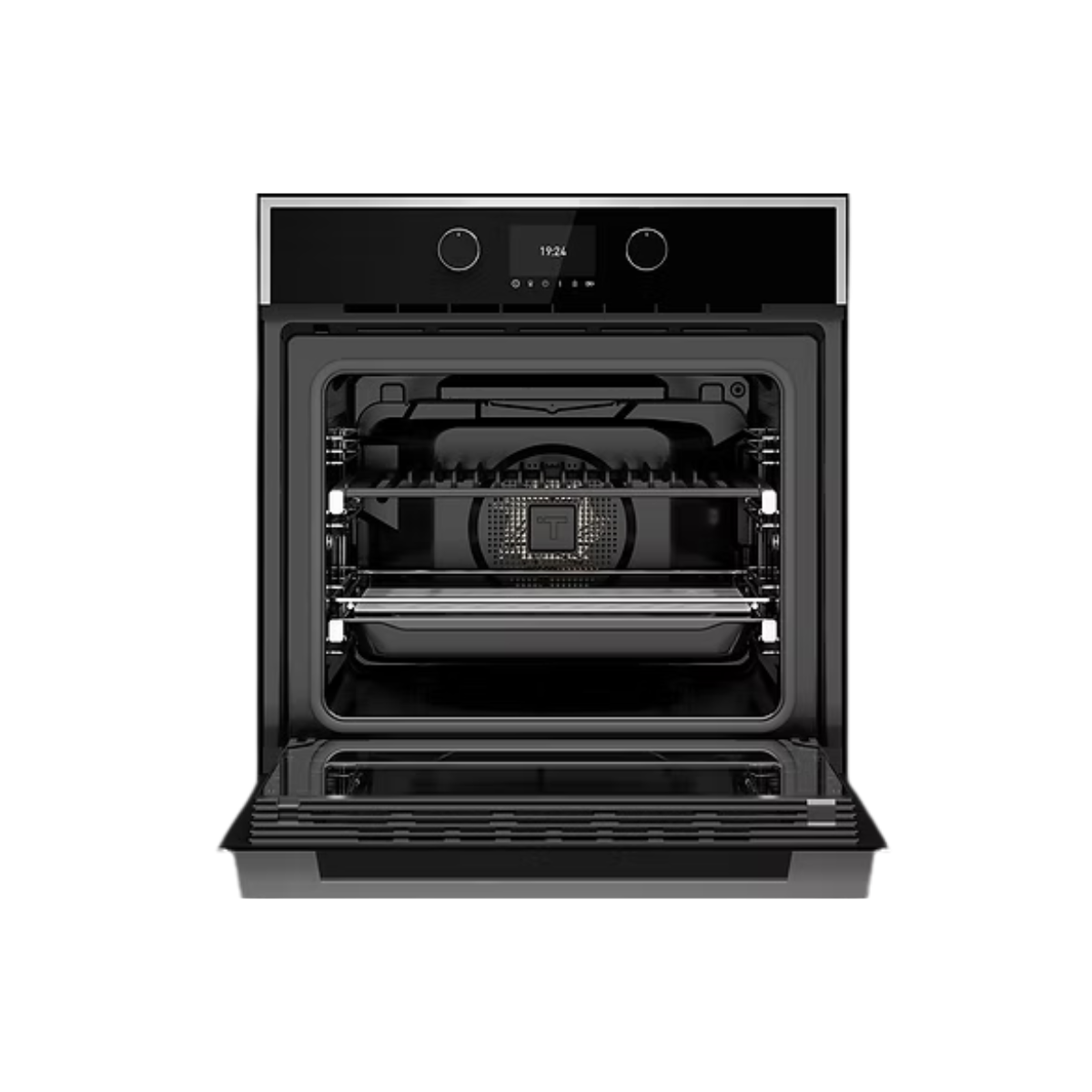 Teka SteakMaster is a 71L built-in oven with 12 cooking functions and SurroundTemp convection for even heat. Its powerful 700°C SteakGrill and special cast-iron grid deliver steakhouse-style searing at home, backed by 20 automatic meat programs. DualClean makes maintenance simple, combining 3-level pyrolytic self-cleaning with HydroClean PRO steam cleaning for easy wipe-down.